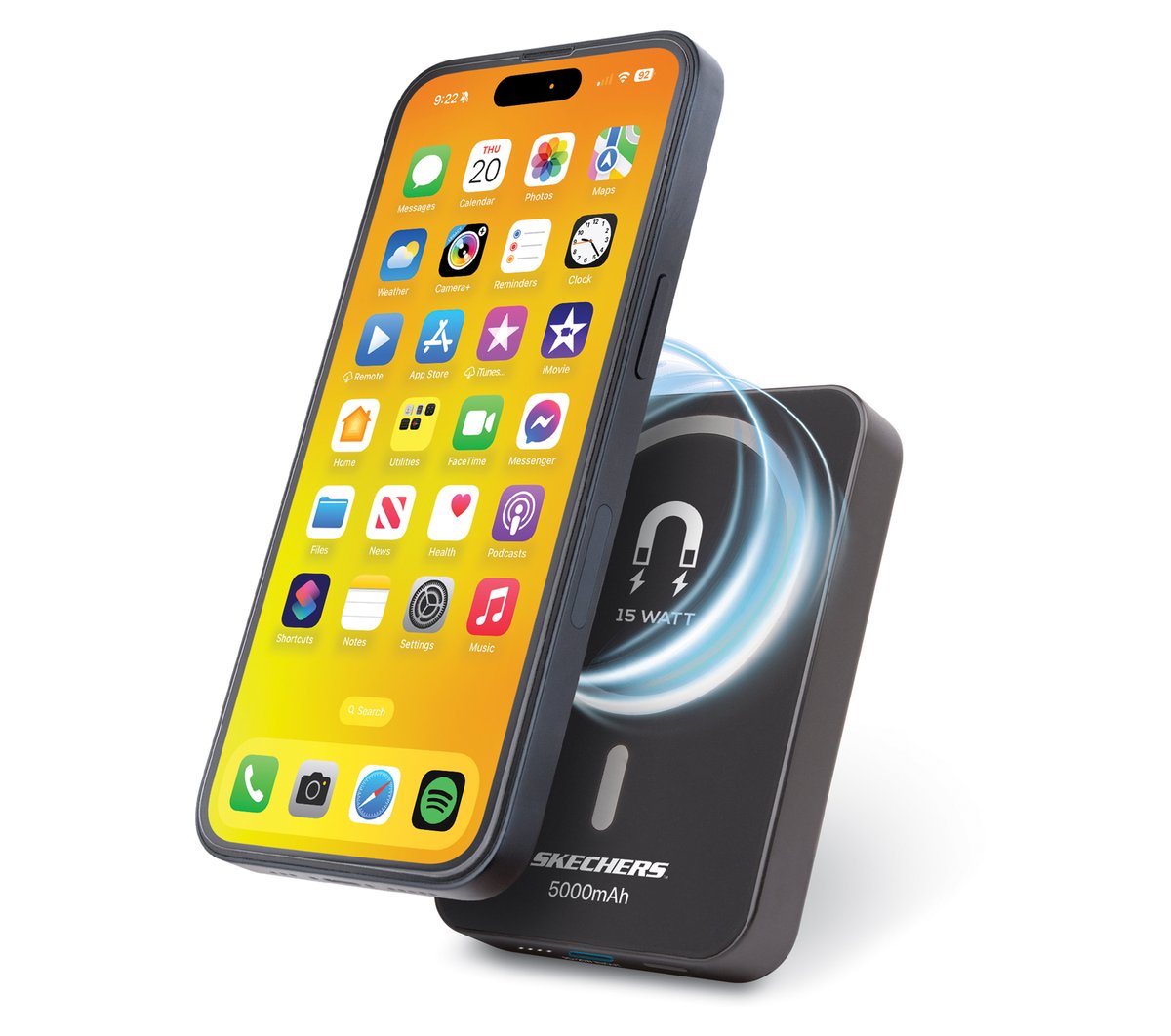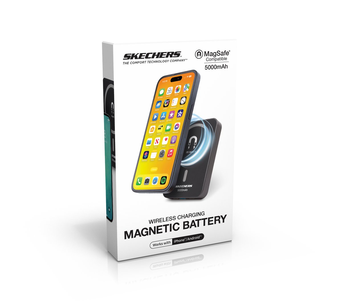 Take the charge wherever you go with Skechers 5k 15W Wireless Charging Magnetic Battery. This magnetic portable charger delivers 5,000mAh of power to your phone for up to 100% extra battery so you never miss a moment. Works with MagSafe-compatible iPhone and Android devices.