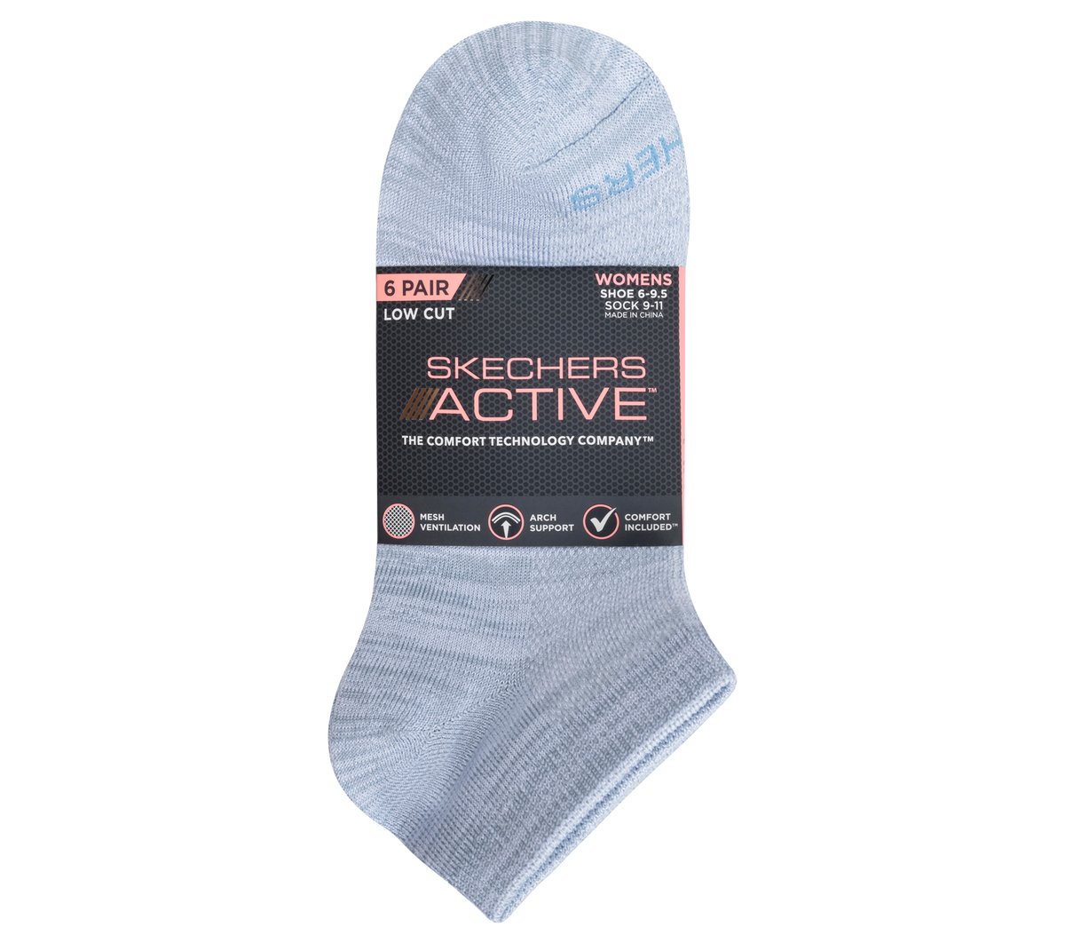 Add a touch of fun to your everyday basics with the Skechers 6 Pack Women’s Low Cut Sport Stripe Socks. This casual ankle sock is made from a stretchy poly-blend fabric and features a super soft feel, mesh ventilation, arch support, and Skechers® logo detail at the toe seam.