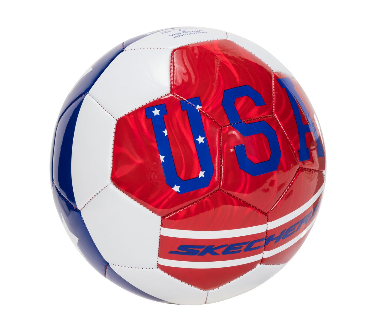 Play to win with Skechers Accessories America Size 5 Soccer Ball. This ‘Americana’ themed regulation size soccer ball has a durable foam PVC and rubber construction in a hexagonal patch design with USA graphic and Skechers Performance™ logo detail.