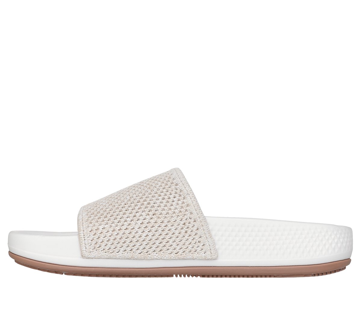 Slip into ultimate relaxation with Skechers Arch Fit® Hyper Slide – Lena. This single band recovery sandal features a heathered knit upper with HYPER BURST® midsole cushioning, supportive Arch Fit® footbed, and a Goodyear® Rubber Outsole for anti-slip traction under wet and dry conditions.
