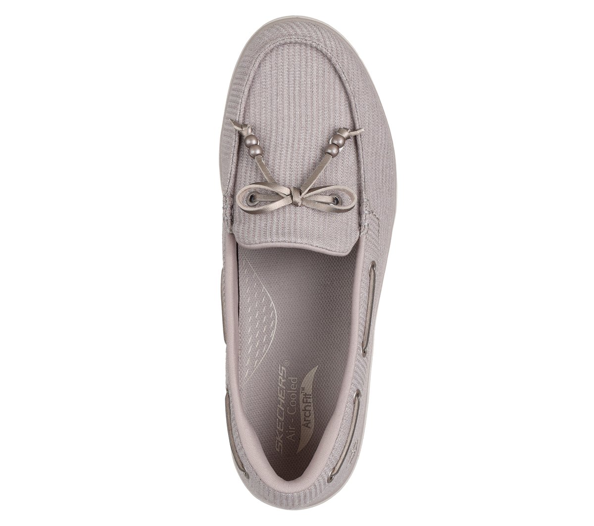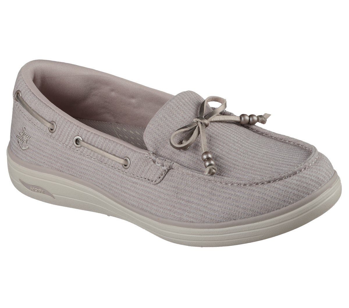 Sail through the day in well-cushioned comfort with Skechers Arch Fit® Inspire – Beach Vacay. This vegan boat style has been granted the APMA Seal of Acceptance and features a canvas upper with metallic deco laces, lightweight ULTRA GO® cushioning, and a removable Arch Fit® insole.