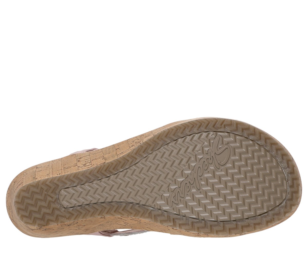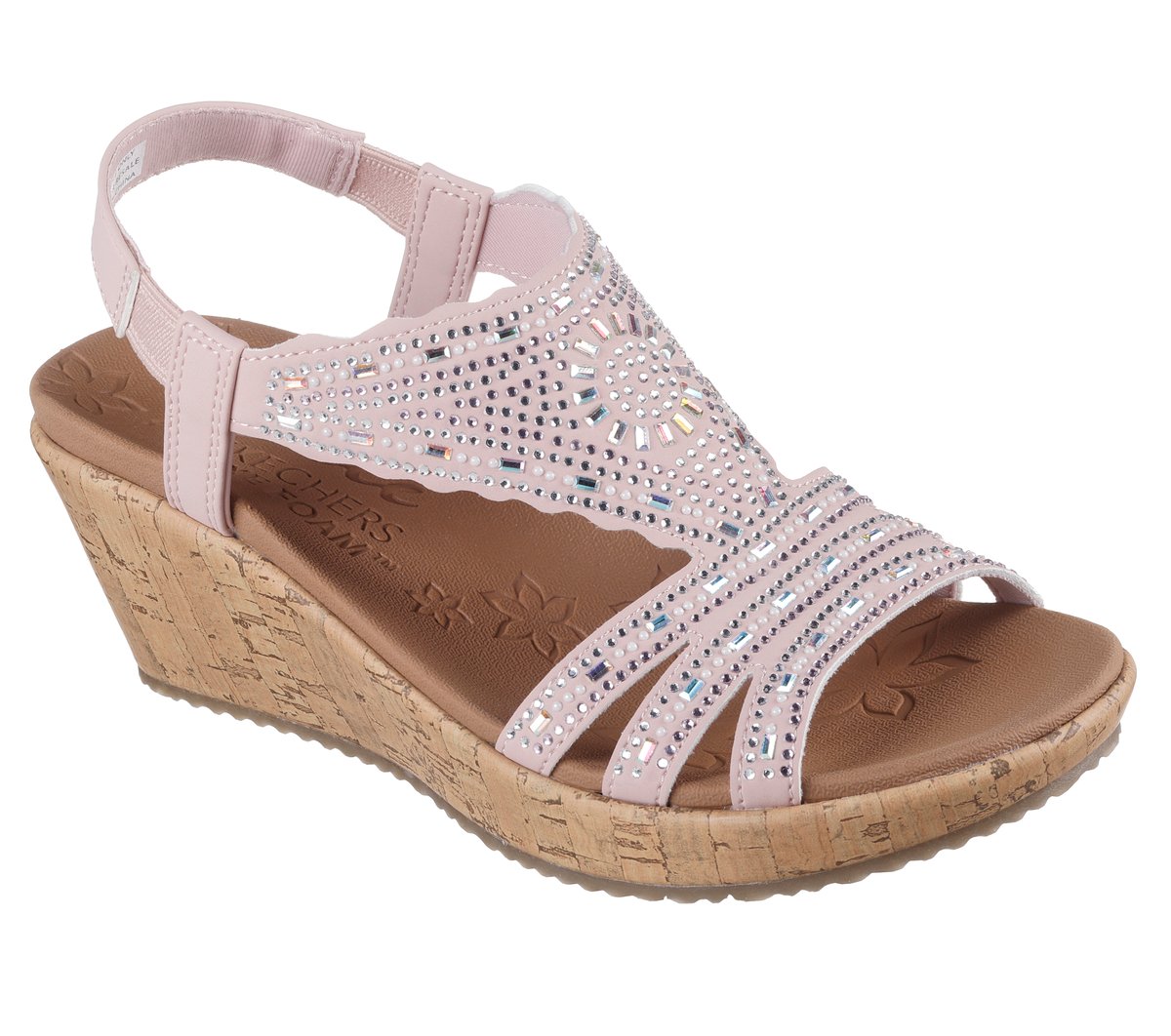 Shine in stylish comfort with Skechers Cali® Beverlee – Dazzling Charm. This casual strappy wedge-heeled pull-on style features a rhinestone embellished synthetic upper with cork veneer midsole, plus a cushioned Luxe Foam® comfort footbed.