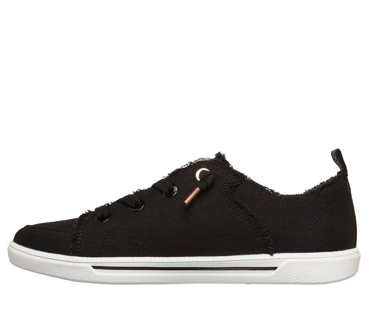 Easy-wearing classic style and comfort combine in BOBS® from Skechers® B Cute 2.0. This casual vegan design features a cotton canvas upper with frayed edge details, tied-off decorative laces, and a cushioned Skechers Memory Foam™ insole. BOBS® from Skechers® is committed to saving the lives of pets in need.