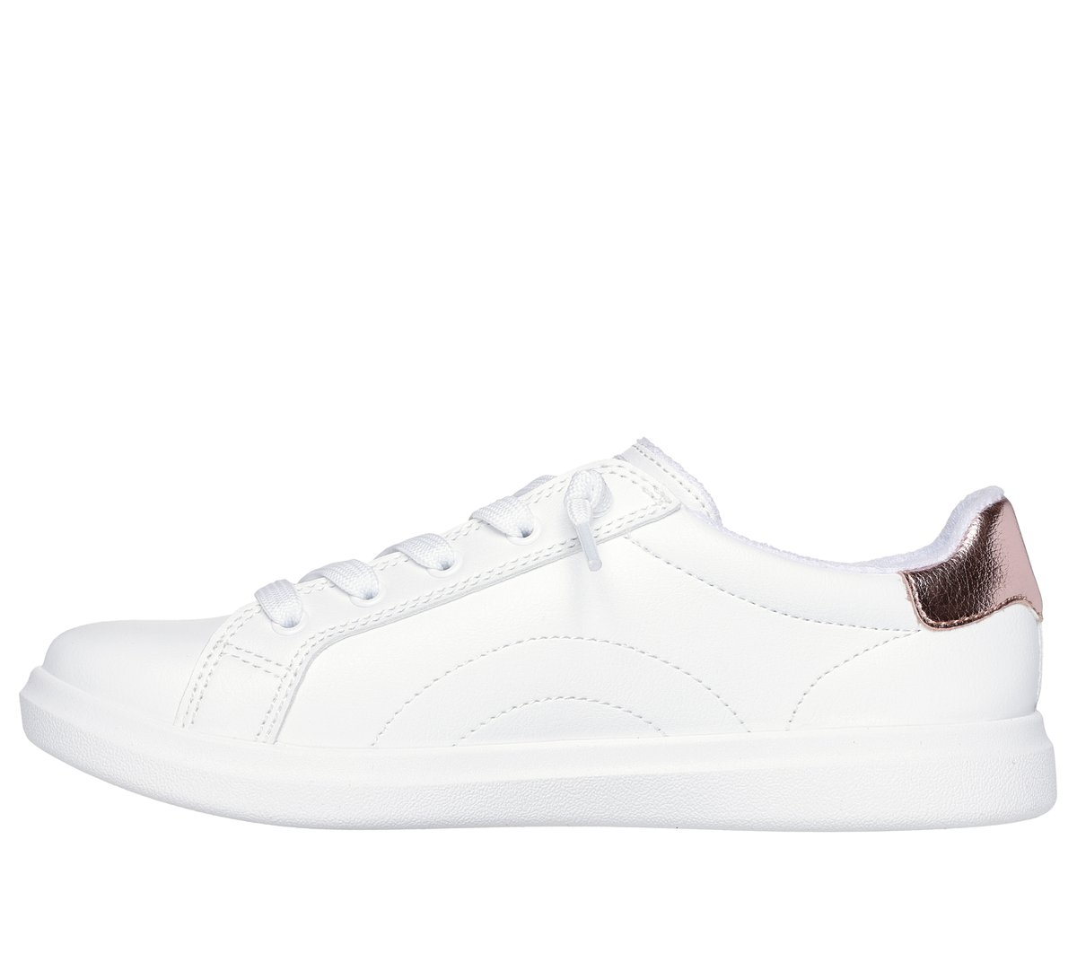 Sleek classic style and comfort combine in BOBS® from Skechers® D’Vine – Daring Charm. This casual design features a smooth faux leather upper with metallic heel collar, stitching detail, tied-off laces, and a cushioned Skechers Memory Foam™ insole. BOBS® from Skechers® is committed to saving the lives of pets in need.