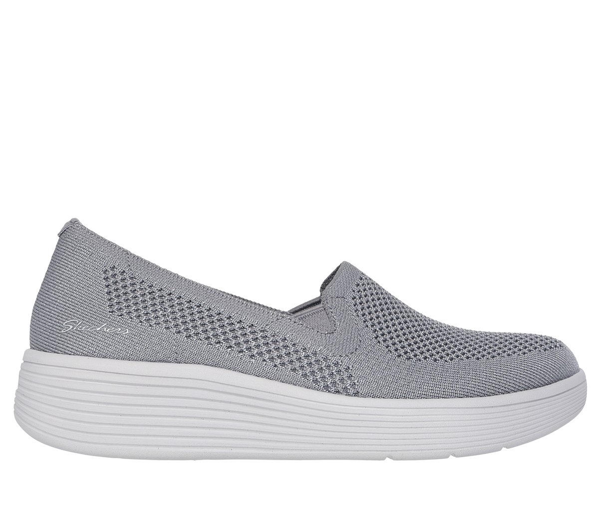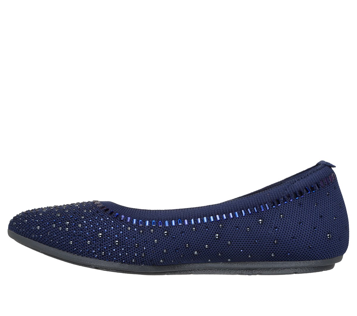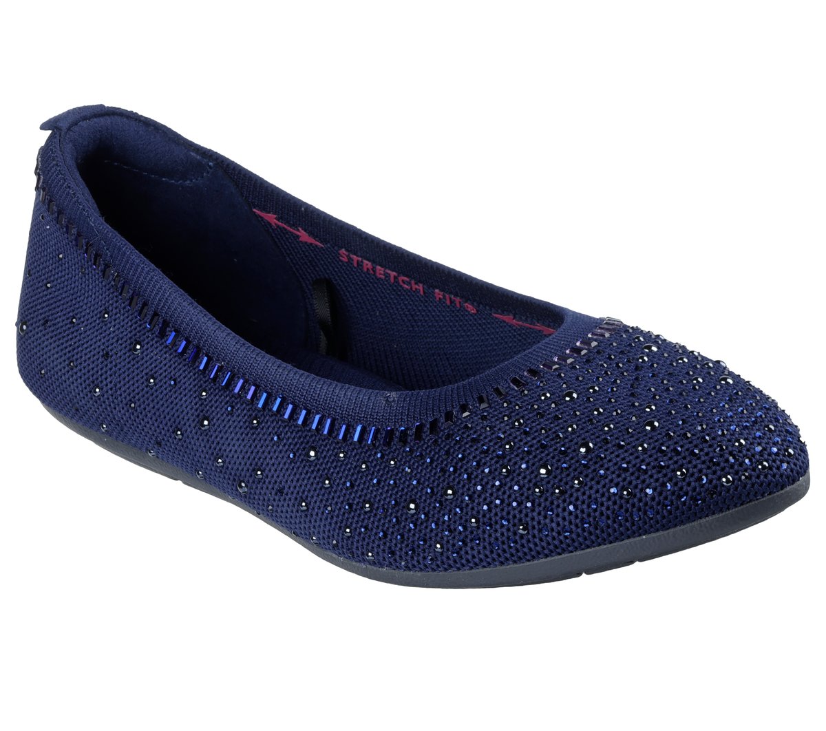 Gorgeous textured style becomes an eternal favorite in Skechers Cleo® 2.0 – Mesmerizing Nights. Designed with recycled materials, this Stretch Fit® vegan skimmer features an embellished knit upper and a cushioned Skechers Air-Cooled Memory Foam® insole. Our Planet Matters®: Good for your feet. Good for the world.®