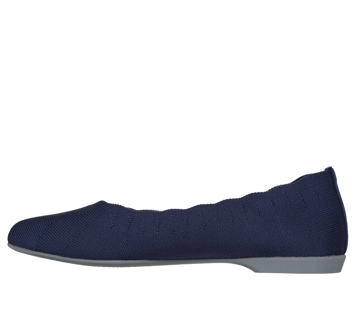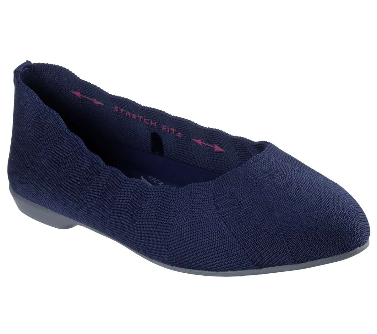 Gorgeous textured style becomes an eternal favorite in Skechers Cleo® Style. Designed with recycled materials, this Stretch Fit® vegan skimmer features a knit upper with scalloped collar trim and a cushioned Skechers Air-Cooled Memory Foam® insole. Our Planet Matters®: Good for your feet. Good for the world.®