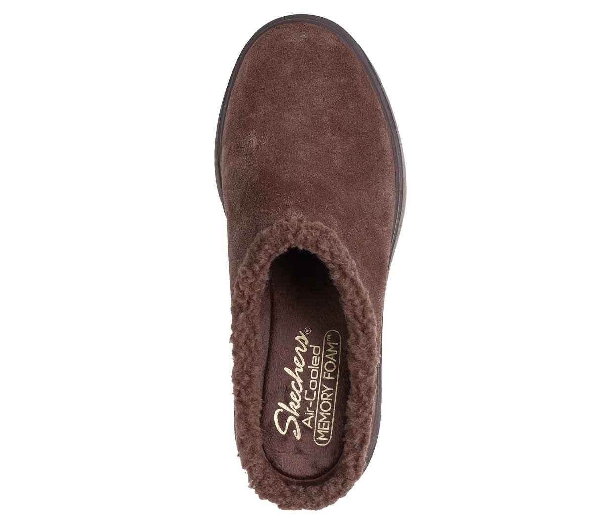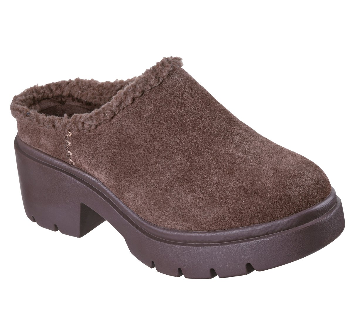 Experience the height of premium style in Skechers Cozy City. This elevated clog design features a 3M® treated genuine suede upper with faux-shearling trim, a chunky articulated midsole, and our signature Air-Cooled Memory Foam® cushioned comfort insole.