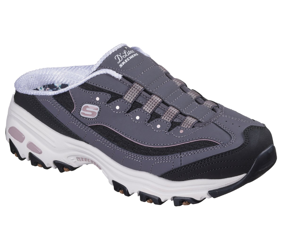 Iconic style meets supreme comfort in Skechers D’Lites – Nostalgic Breeze. This breathable open-back mule sneaker features a mesh upper with leather and duraleather overlays plus a cushioned Skechers Air-Cooled Memory Foam® footbed.