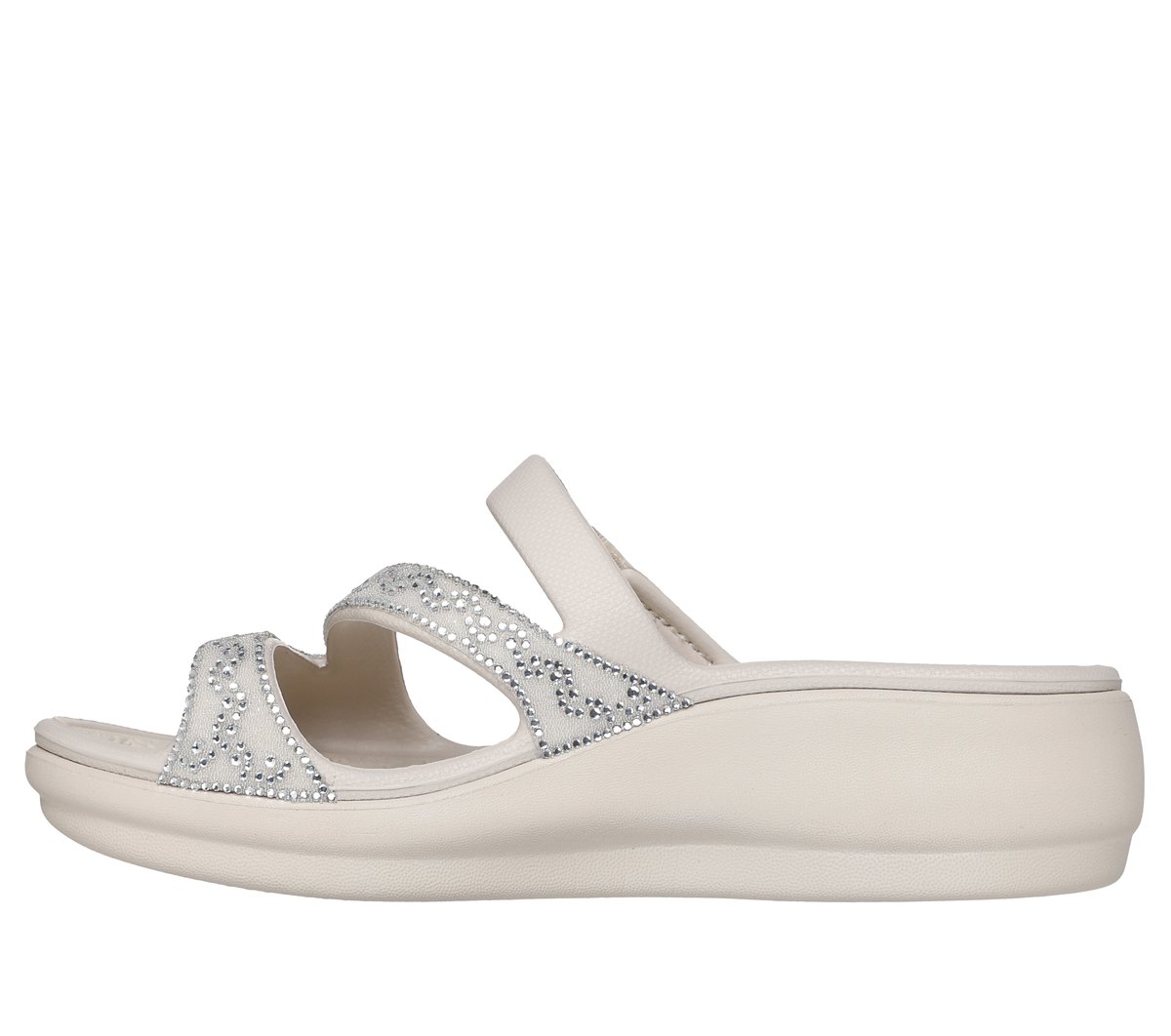 Walk with breezy supportive comfort wearing Skechers Foamies®: Arch Fit® Ascend – Bedazzle. This sculpted Foamies® slide sandal has been granted the APMA Seal of Acceptance and features a rhinestone-embellished Foamies® EVA upper with adjustable cross strap, Luxe Foam® cushioning, plus an Arch Fit® footbed.
