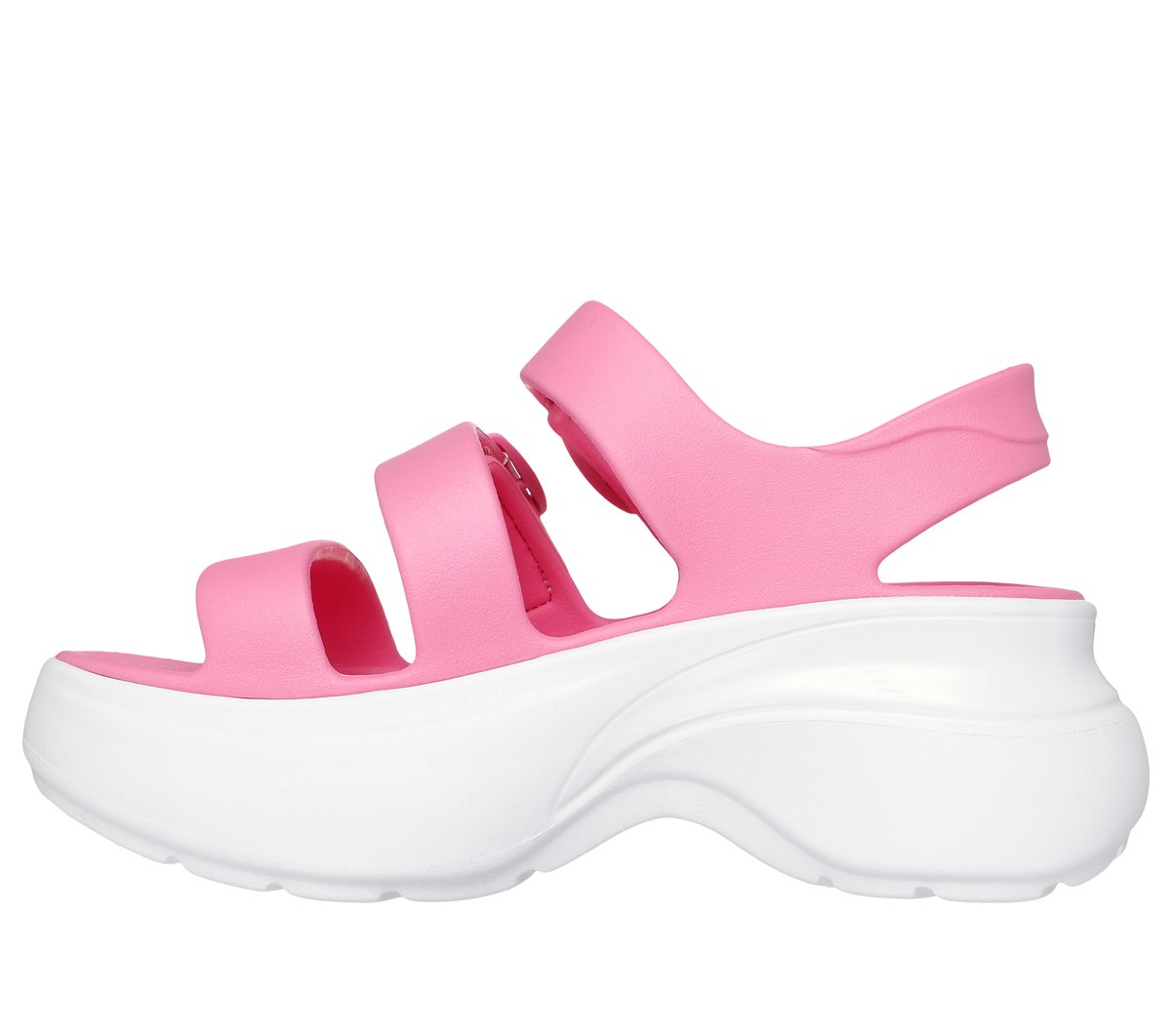 Make a statement with a fashion-forward look wearing Skechers Foamies®: Foamies Tai – Get Real. This sculpted open-toe fashion sandal features a flexible Foamies® EVA upper with buckle straps, adjustable instep closure, cushioned footbed, and a semi-articulated chunky midsole.