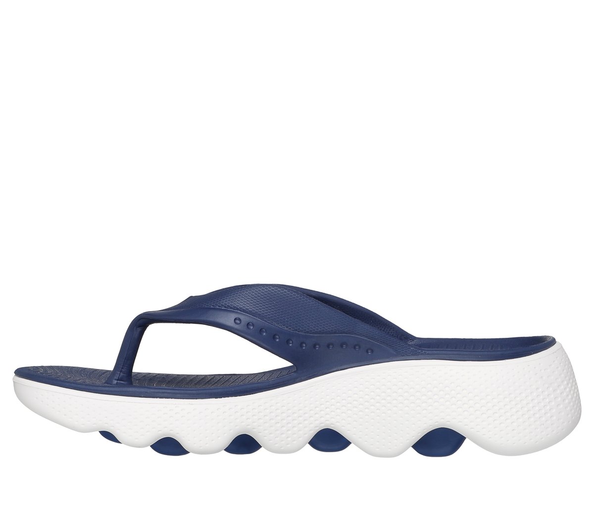 Embark on a path of flip-flop luxury wearing Skechers Foamies®: Massage Fit™ – Alluring. This innovative vegan sandal features a sculpted Foamies® Eva upper with a 3-point silhouette and a unique wavy Massage Fit® midsole that gently massages your feet with every step.