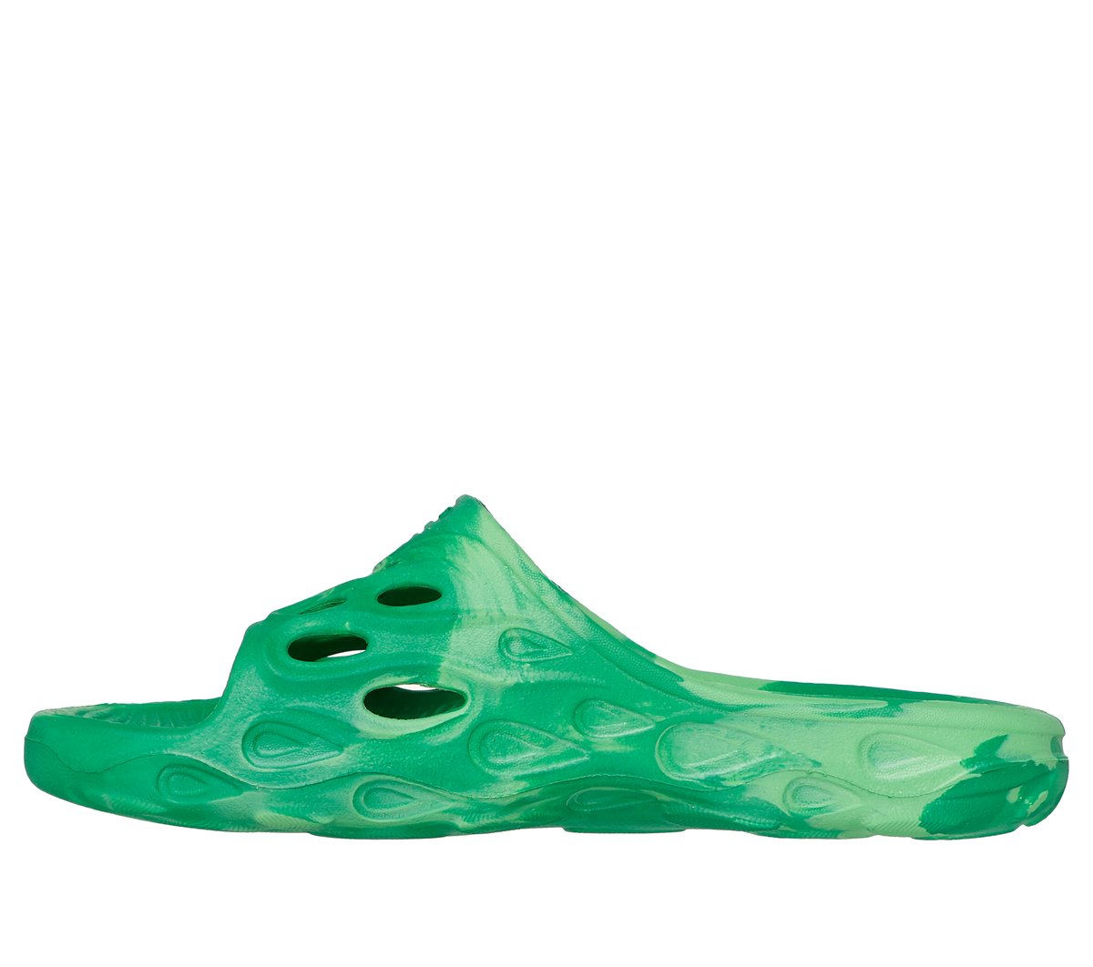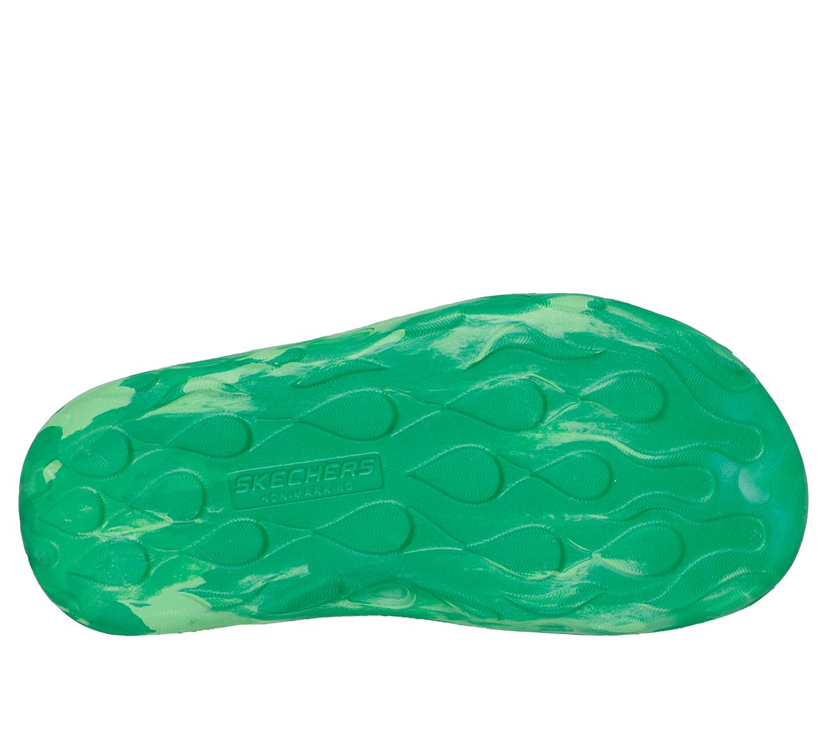 Take the fast lane to comfort wearing Skechers Foamies: Thermo-Slide. This single crossband slide sandal is sculpted from our lightweight Foamies® EVA and features flame-shaped cutouts and a cushioned comfort footbed.