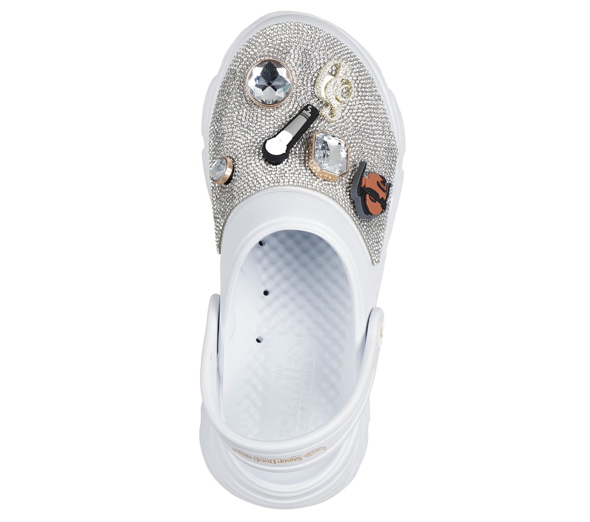 Step up the fun in awesome comfort with Skechers Foamies® Game Kicks®: Zaggle – Hydro-Pointz. This comfort clog style features a flexible an EVA upper with a game controller themed design, convertible heel strap, lighted details and a contoured cushioned footbed.