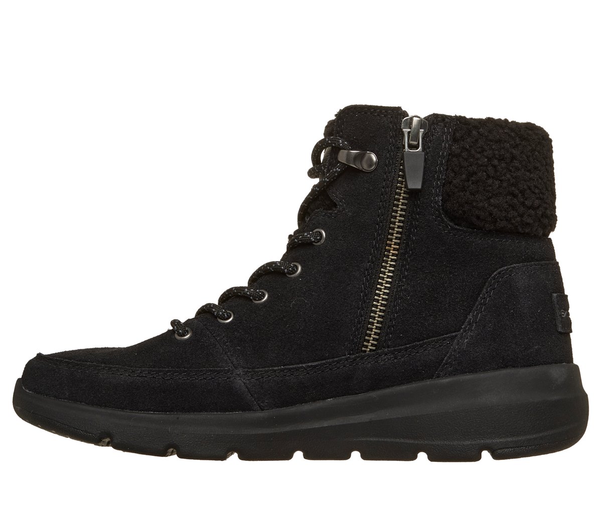 - Suede upper with sherpa lining for added warmth