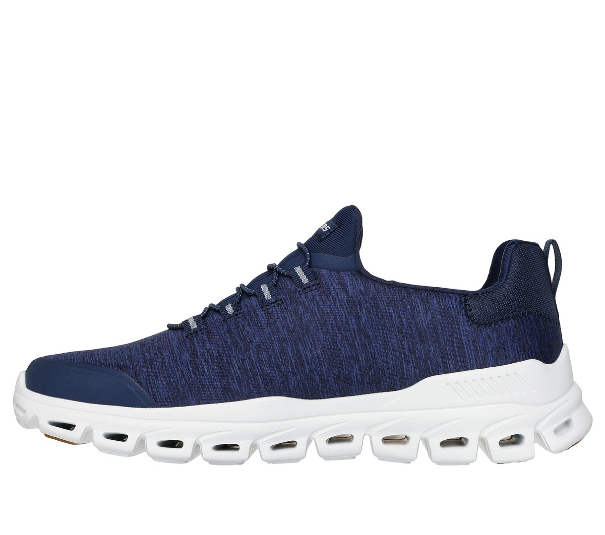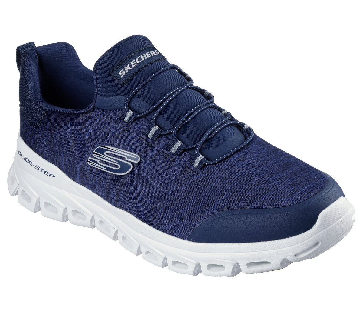 Step into flexible comfort with Glide-Step® – Ryla. This stretch-laced vegan trainer features a heathered jersey upper, Skechers Air-Cooled Memory Foam® comfort insole, and a Glide-Step® geometric cushioned midsole.