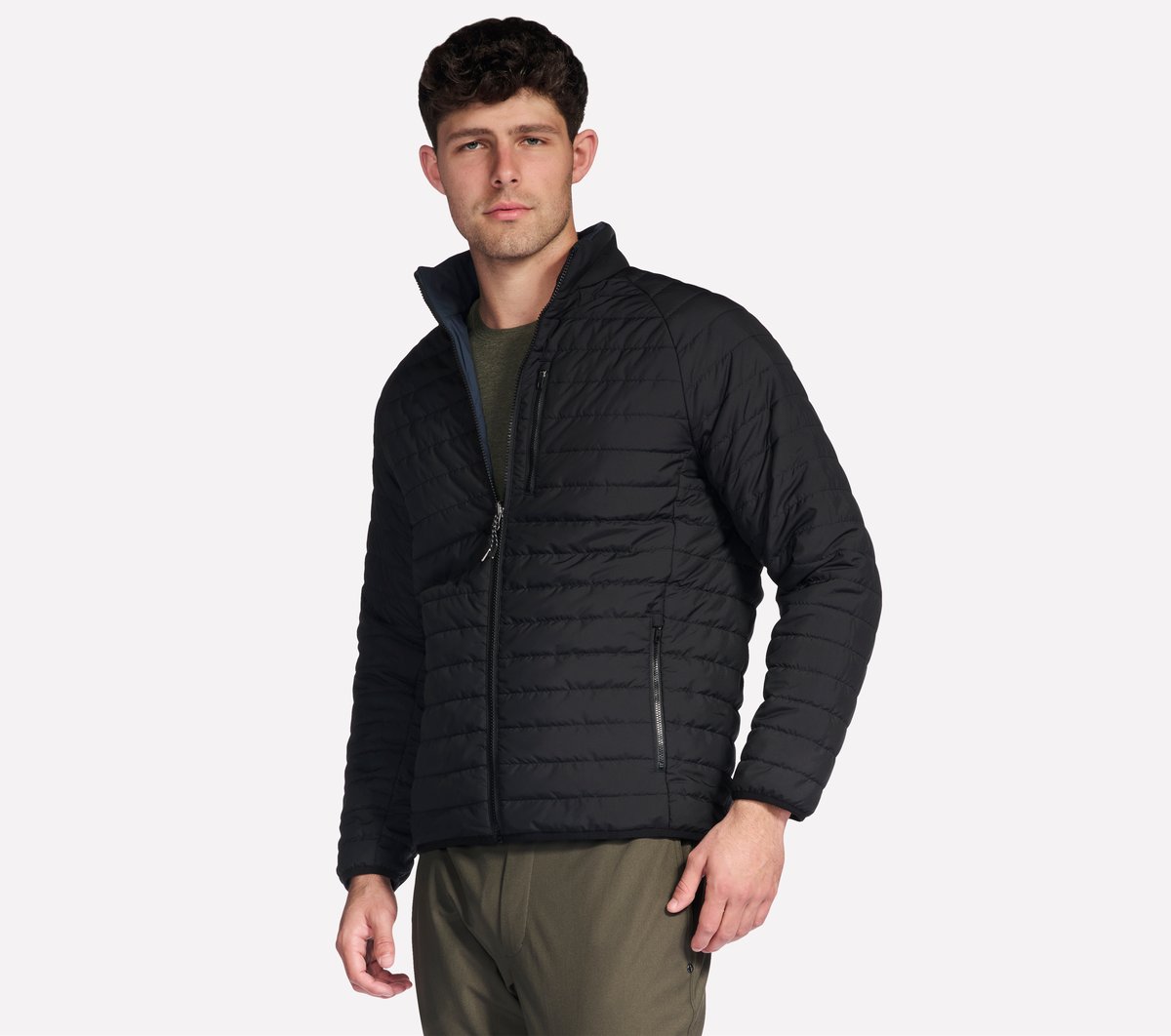 Stay warm in twice the style wearing Skechers GO SHIELD™ Cozy Fit® Altitude Reversible Jacket. This fully reversible mock-neck puffer is made from our lightweight GO SHIELD™ Cozy Fit® fabric and features zippered hand and chest pockets on the quilted side and open hand pockets on the smooth side.