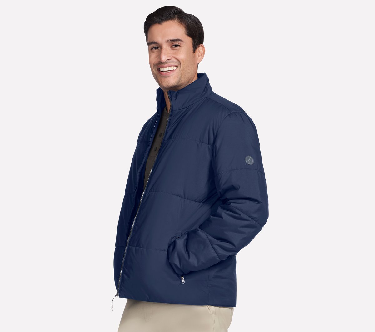 Add a layer of cloud-like softness to an outerwear favorite with Skechers GO SHIELD™ Cozy Fit® Traverse Down Jacket. This full-zip puffer jacket is made from our water-resistant GO SHIELD™ Cozy Fit® fabric and features duck down insulation, zipped hand pockets, and an adjustable stretch drawcord at bottom hem.