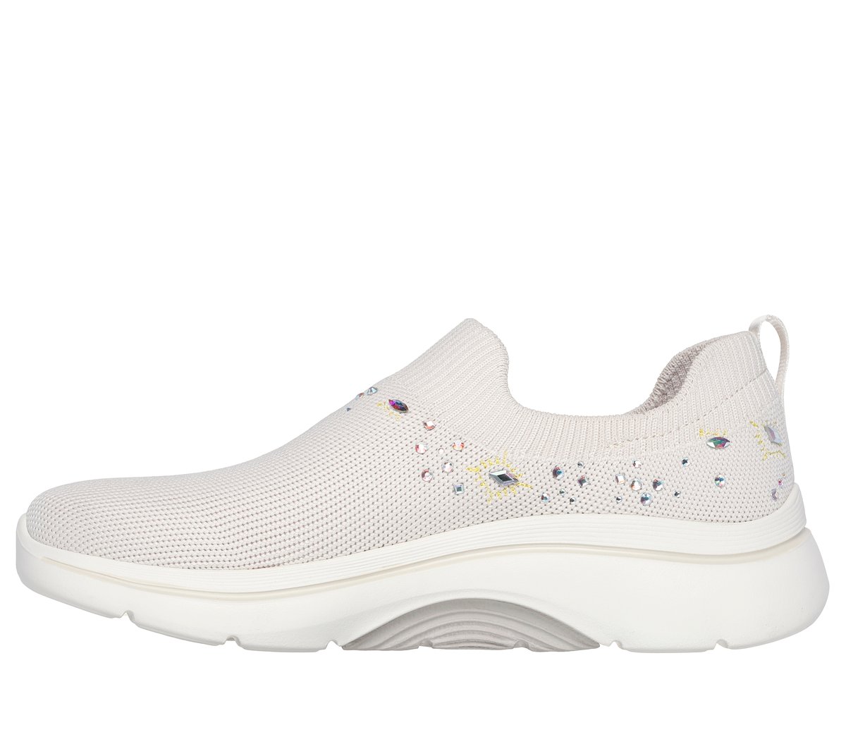 Experience ultimate comfort and support wearing Skechers GO WALK® Arch Fit® 2.0 – Ayla. This laceless walking design has been granted the APMA Seal of Acceptance and features a Stretch Fit® engineered knit upper with rhinestone embellishments, a removable Arch Fit® insole, lightweight ULTRA GO® cushioning, plus Comfort Pillar Technology® for added support.