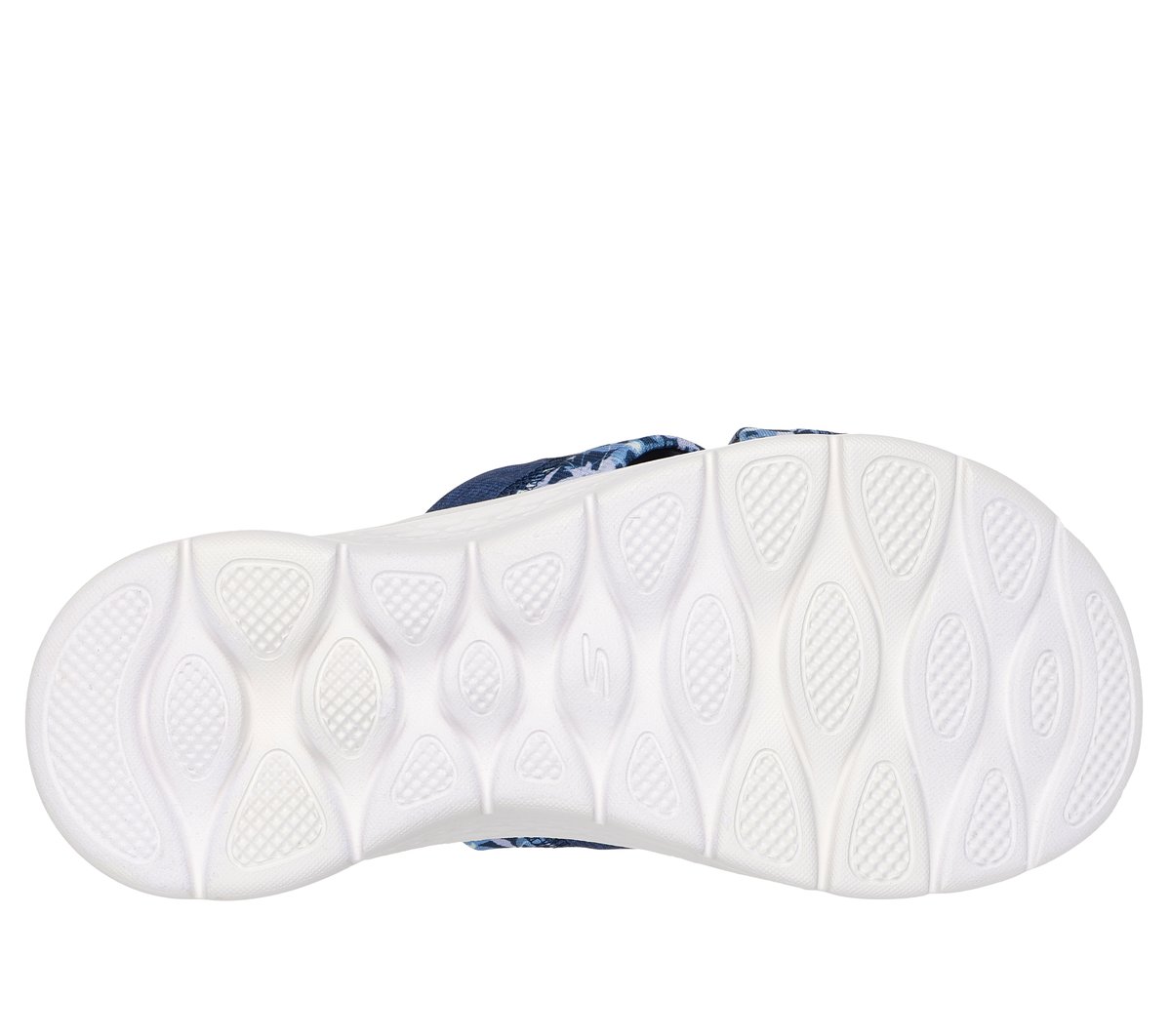 Choose the easy life in laid back style wearing Skechers GO WALK Flex™ Sandal – Elsa. This Memory Foam infused cross strap sandal features a floral print woven fabric upper, contoured Goga Mat® footbed, and lightweight ULTRA GO® cushioning.
