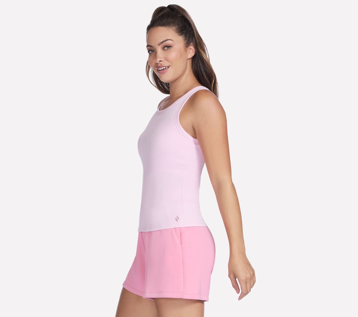 Change into breezy comfort with Skechers GO WALK™ Luxe Rib Tank. This round neck tank top is made from our breathable GO DRI® RIB textured fabric and features a double layer shelf bra with removable bra pads.