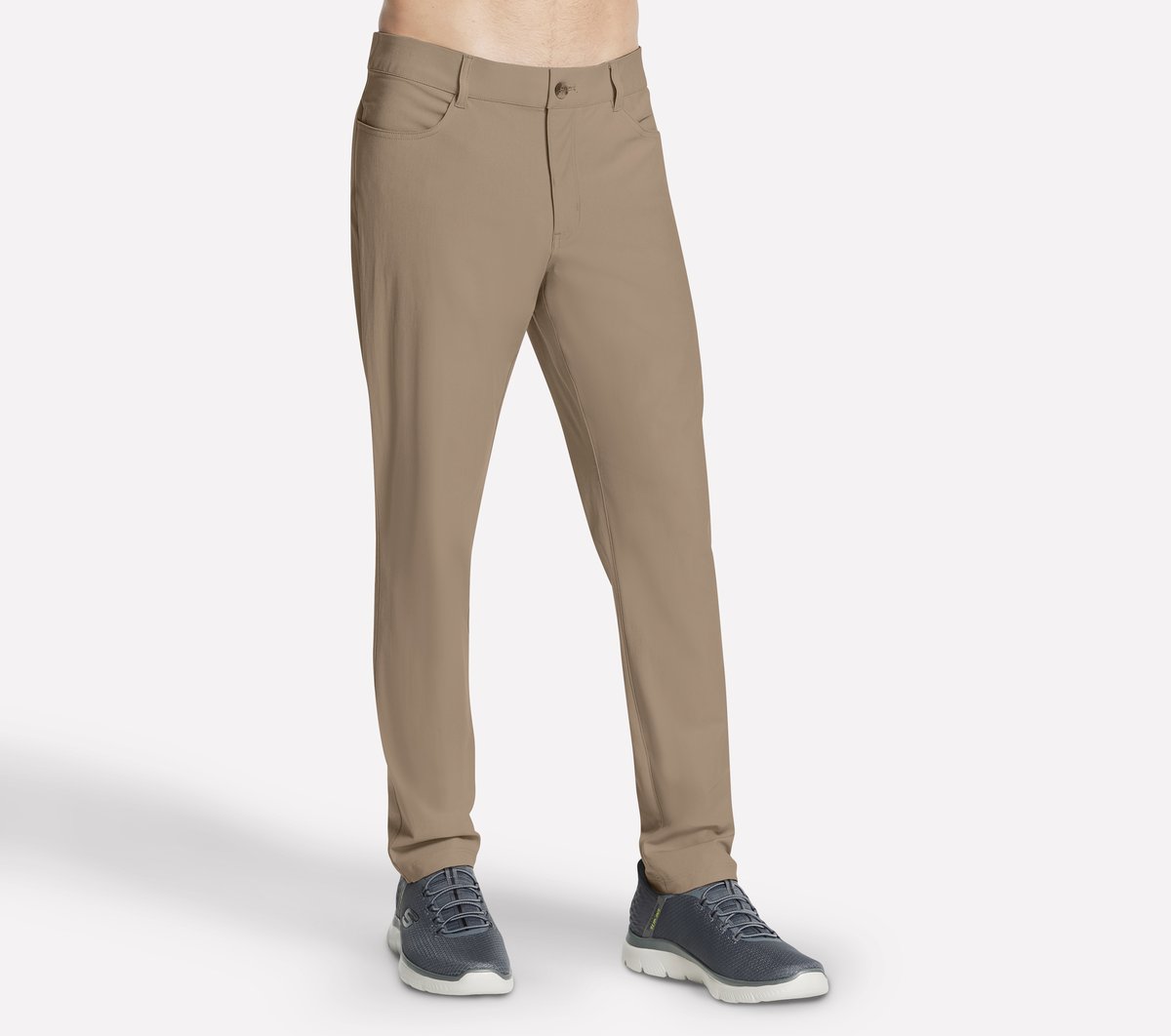 Elevate your look with easy-wearing comfort and versatile style wearing the classic Skechers Premium 5 Pocket Pant. This straight leg everyday style features a zip fly with button closure, belt loops, elasticated waistband, front slash pockets, dual back pockets, and an additional security zipped back pocket.