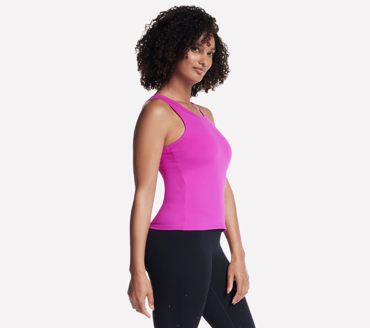 Dress the sporty part with all-in-one convenience and comfort wearing Skechers GO WALK™ Shelf Bra Tank. This casual tank top is made from our moisture-wicking GO FLEX® nylon and spandex blend fabric and features a double layer shelf bra with removable bra pads.