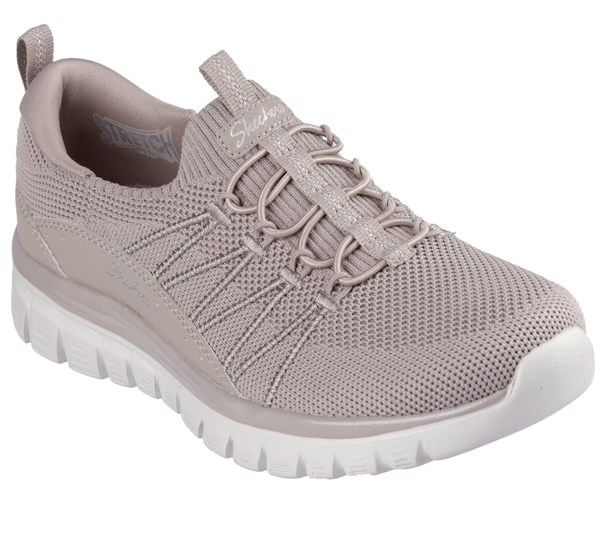 Grace your feet with easy-wearing comfort in Skechers Graceful – Picture Perfect. This stretch-laced vegan style features a Stretch Fit® engineered knit upper with synthetic overlays and a cushioned Skechers Air-Cooled Memory Foam® insole.