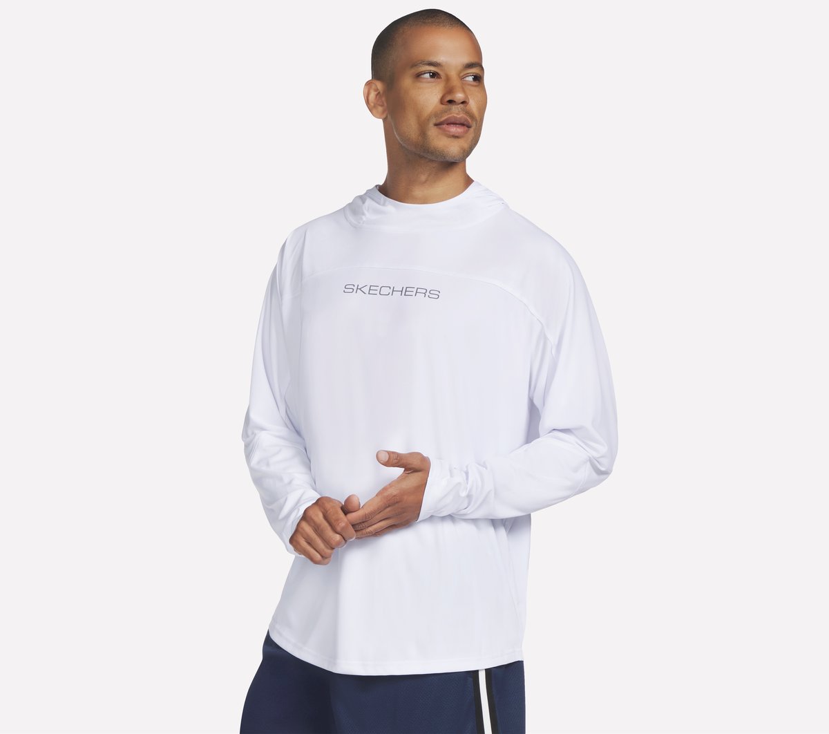 Warm up for your best game yet in stylish comfort wearing Skechers Hoops Long Sleeve Hoodie. This lightweight, breathable design is made from our quick-drying GO DRI® fabric and features a three-panel scuba neck hood and raglan sleeves for maximum mobility.
