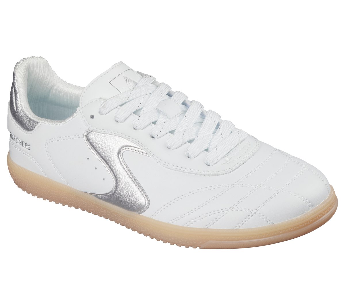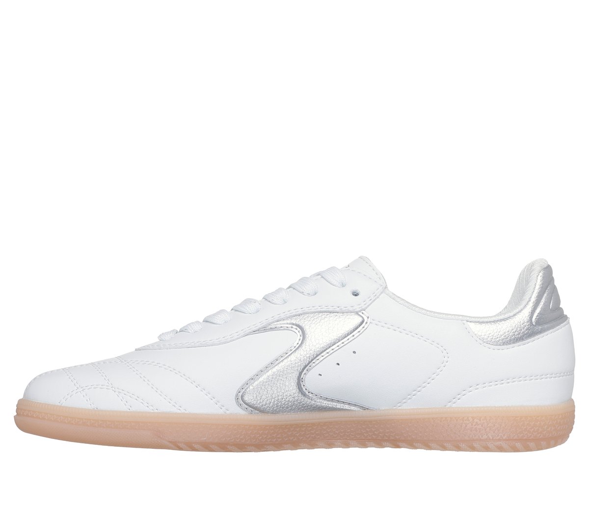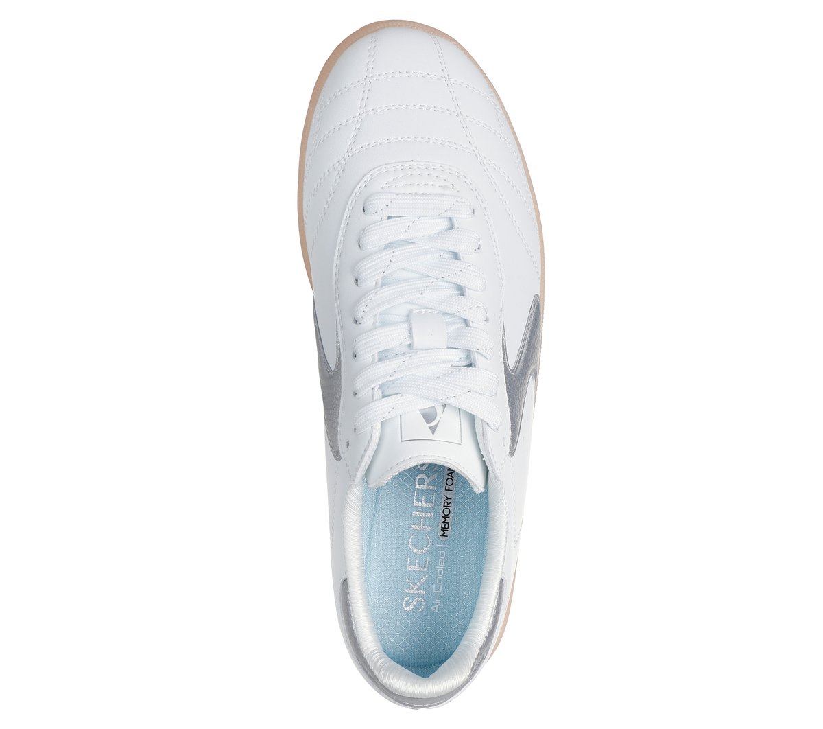 Stitch a modern classic into your everyday wardrobe with Skechers Hotshot – Simply Stitched. This court-style design features a duraleather upper with a lace-up front, metallic ‘S’ quarter logo and heel detail, plus a Skechers Air-Cooled Memory Foam® insole for cushy comfort you can count on.