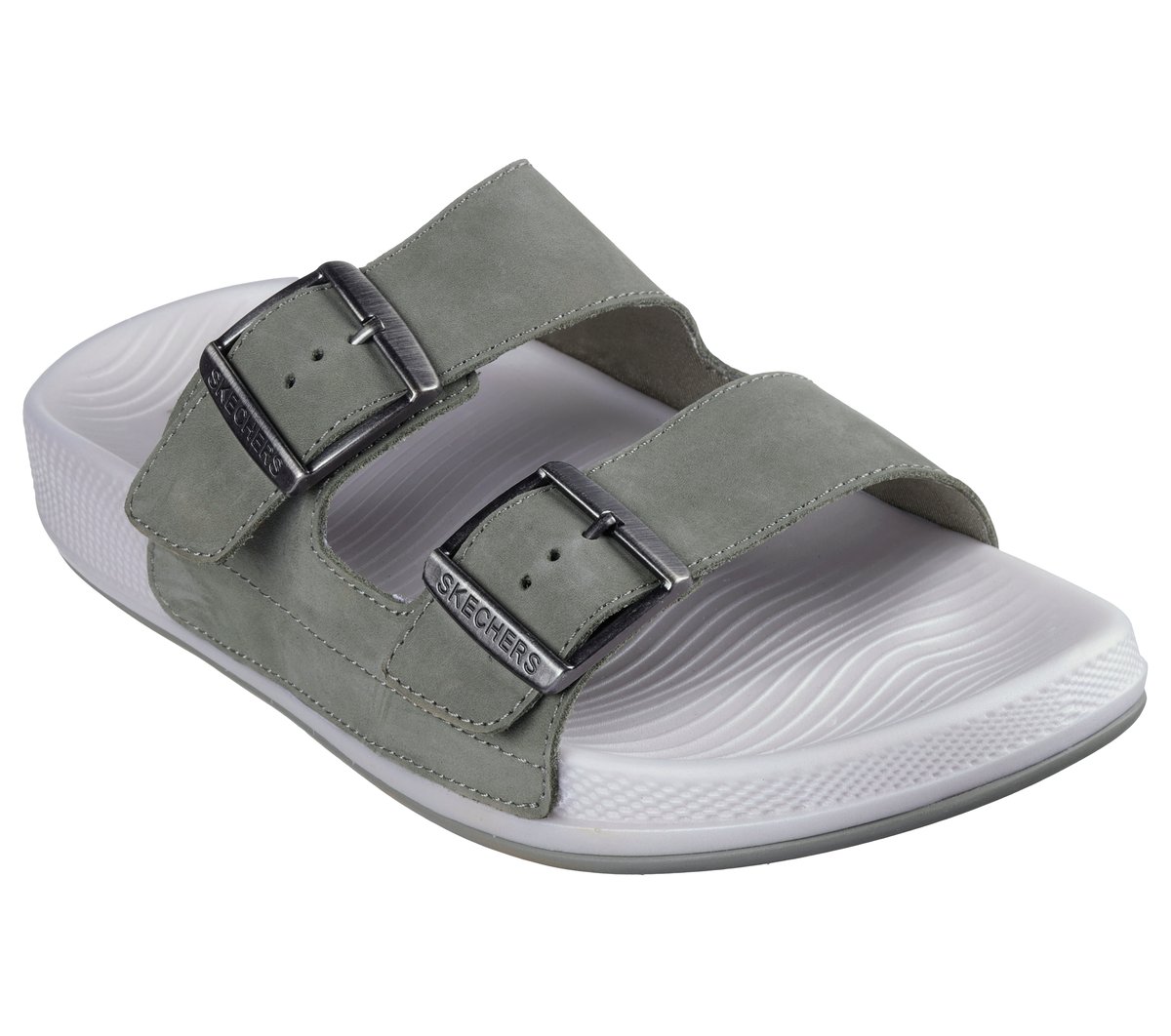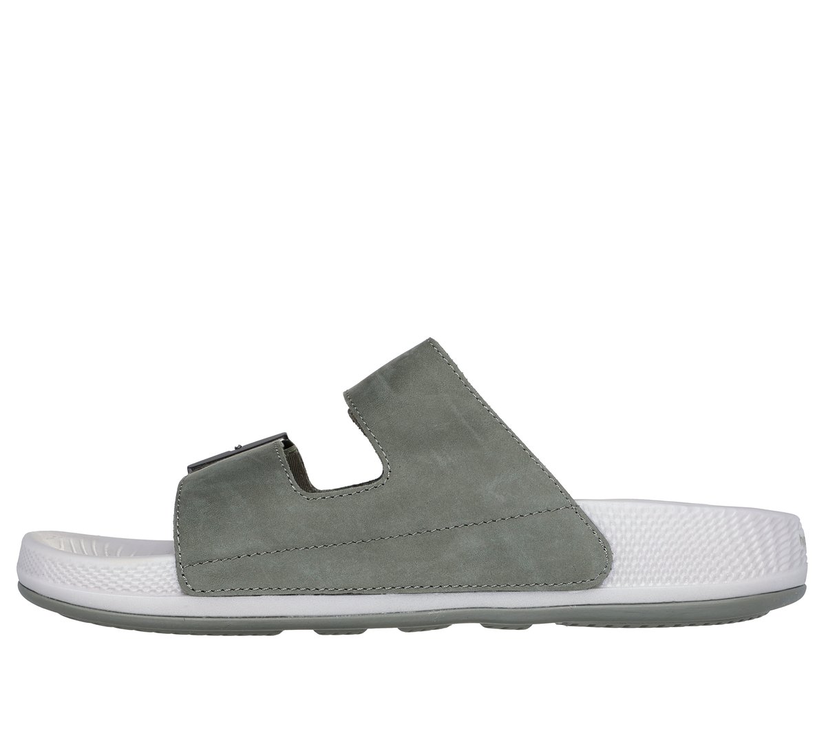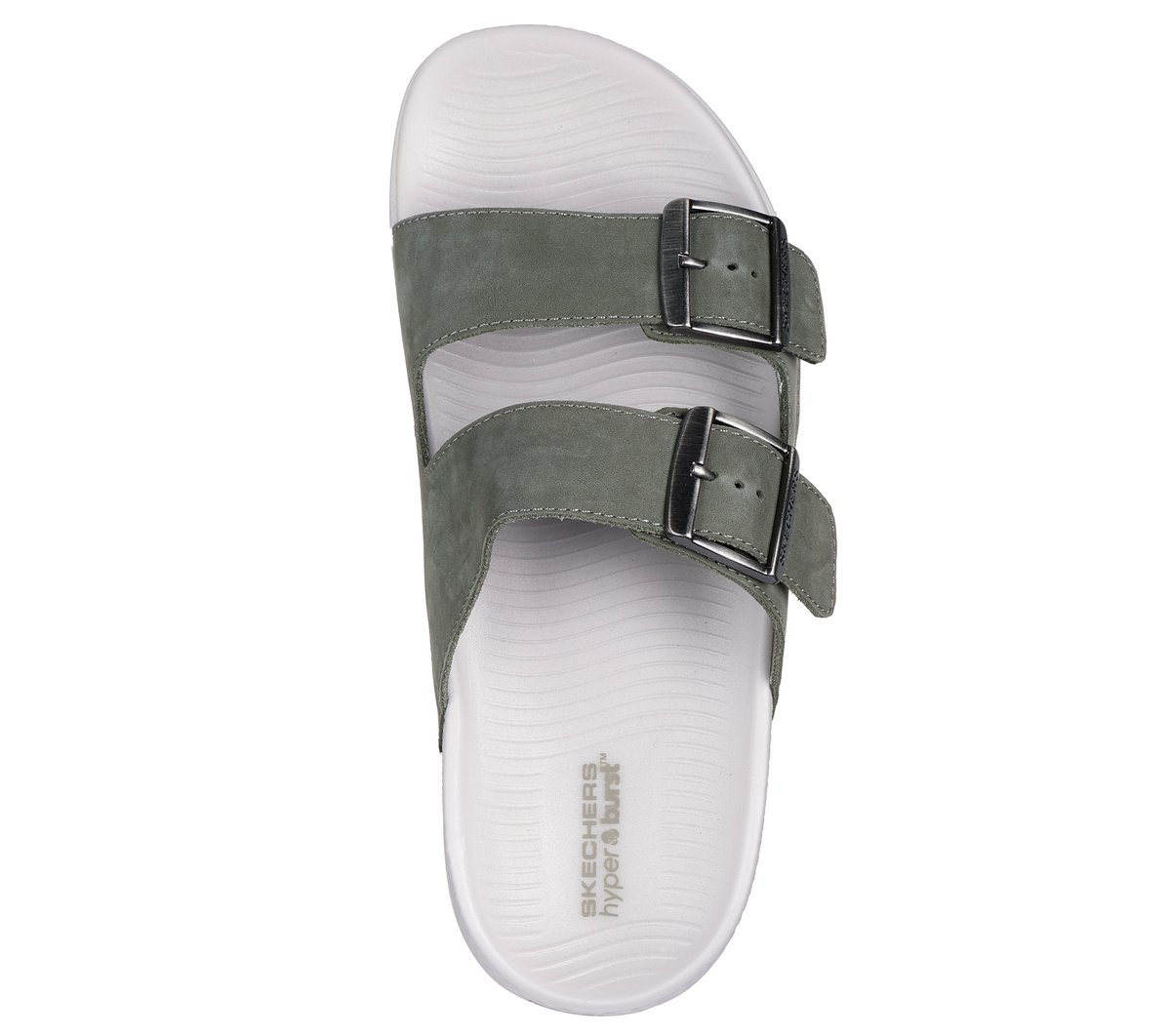 Experience effortless comfort and style with the Skechers Hyper Slide – Vida. This dual buckle slide sandal features a leather upper with a HYPER BURST® cushioned midsole and a Goodyear® Rubber Outsole.