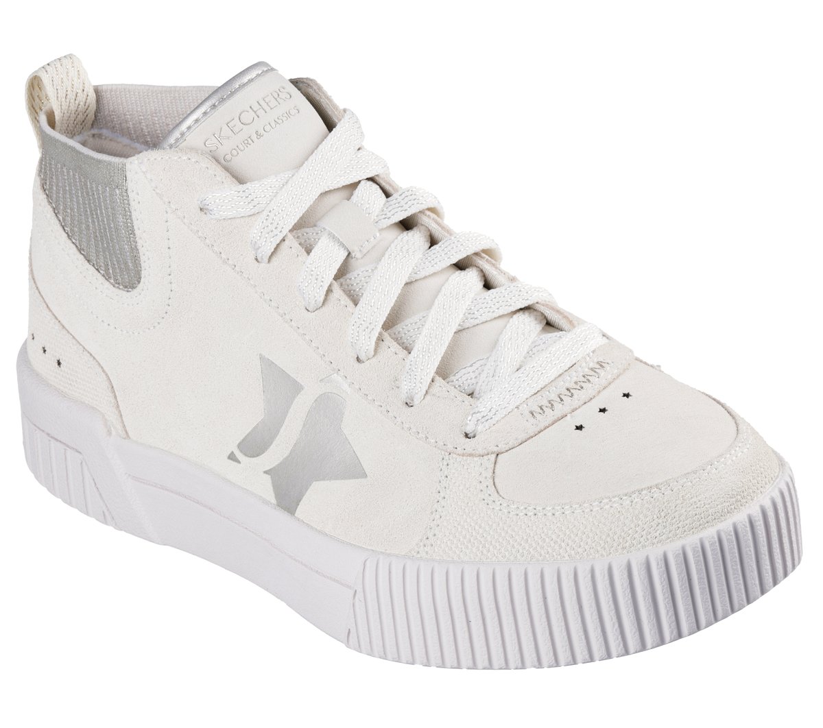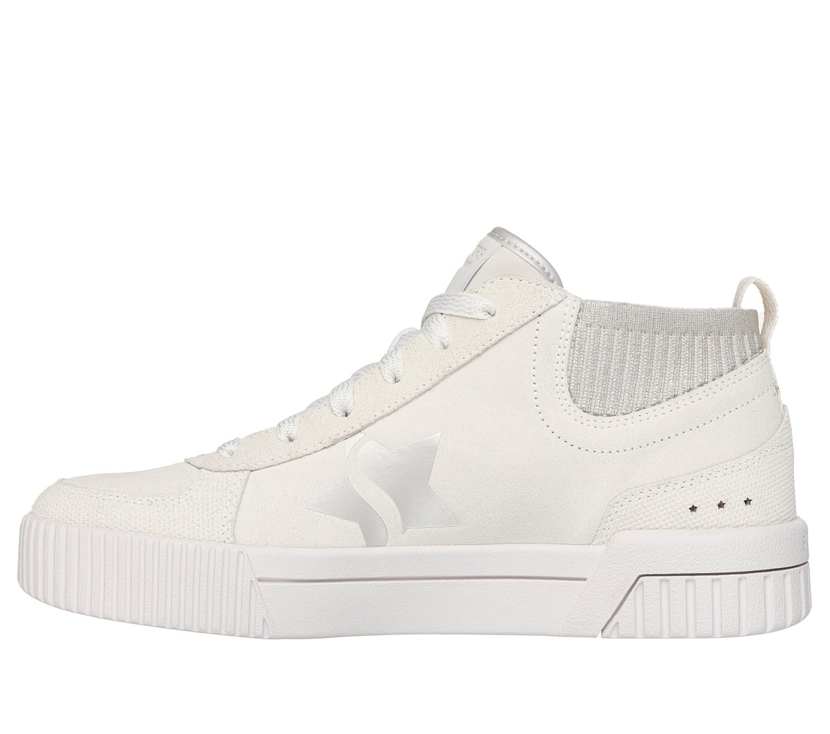 Lace into premium design made for a star wearing Skechers Jade – Soft Sparkle. This lace-up mid-top design features a genuine suede upper with metallic star underlay detail, a metallic knit collar, and a Skechers Air-Cooled Memory Foam® cushioned comfort insole.