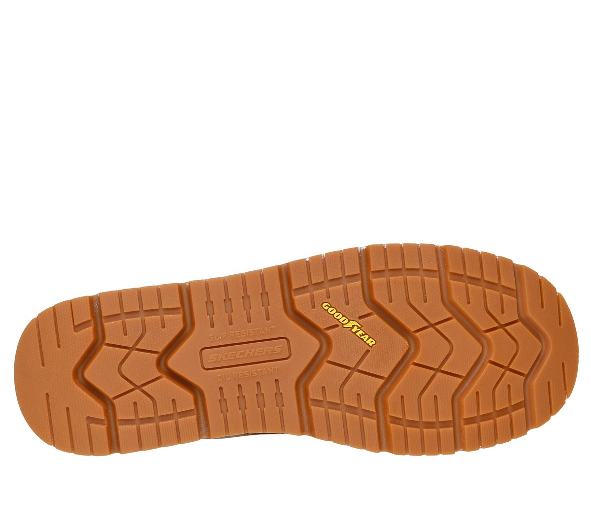 Get the most out of your work footwear with Skechers x John Deere Waterproof: Flex-Wedge Ranger – Grizzly Creek. This lace-up waterproof boot features a smooth premium leather upper, non-metallic composite safety toe, Skechers Contour Foam™ midsole cushioning, and a slip-resistant Goodyear® rubber outsole.