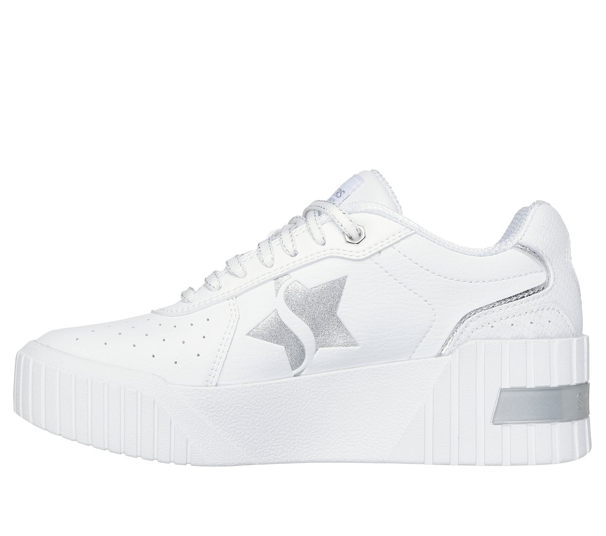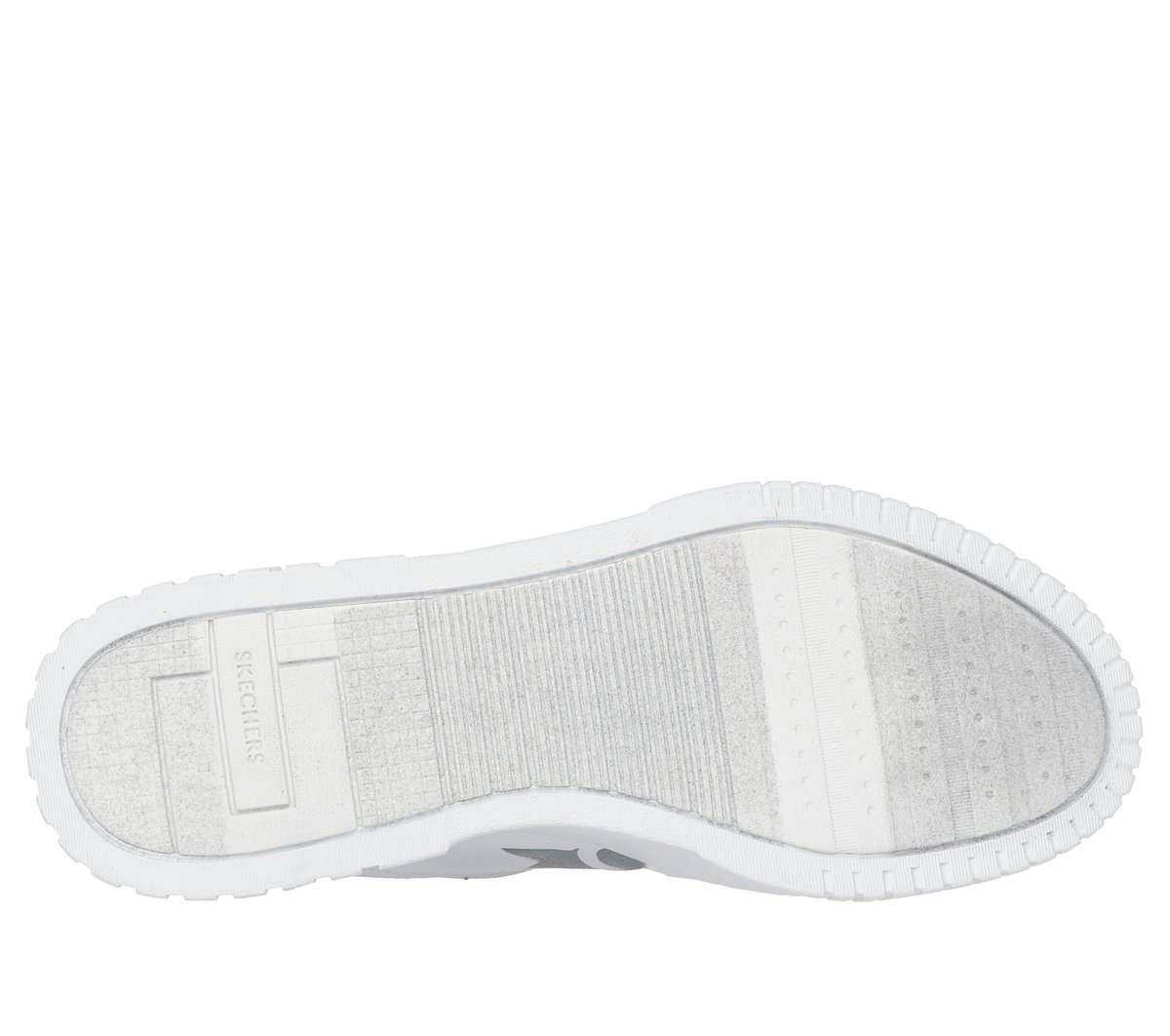 Enjoy classic court-style looks with Skechers Jumbo Jade – Lifted Chic. This low-top lace-up features a duraleather upper with reptile textured details and metallic overlays, plus a cushioned Skechers Air-Cooled Memory Foam® comfort insole.