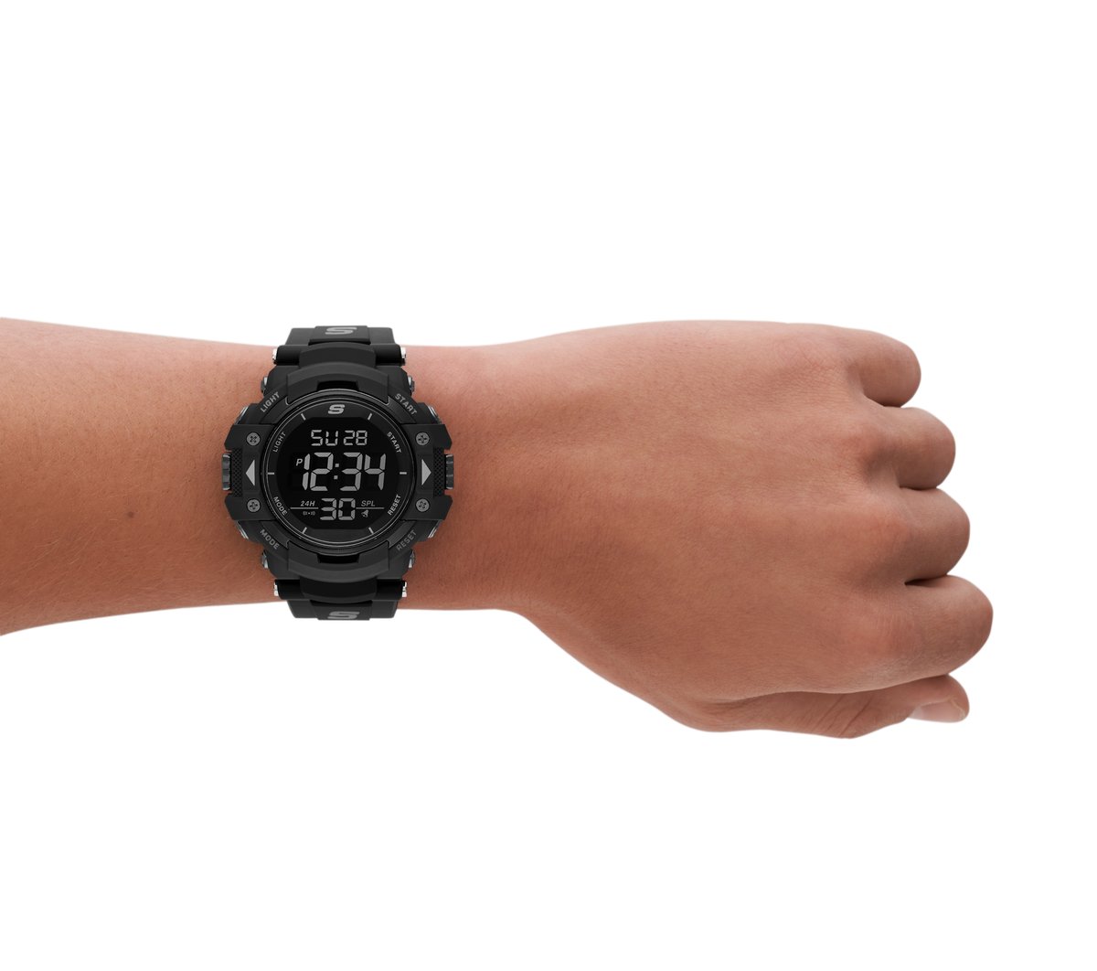 Rugged style and multiple functions combine in the Skechers Keats Digital Watch. Durable ABS plastic case and nylon fabric strap in a diver style digital chronograph watch.