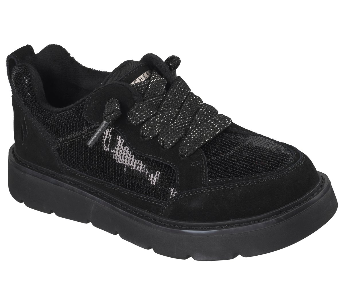 Outdoor comfort meets urban glamour in Skechers Street™ Keepsakes Cozy – Street Hiker Glam. This water-repellent, everyday design features a 3M® Scotchgard®-treated suede and sequin upper with tied-off chunky laces, soft chenille lining, and a cushioned Skecher Memory Foam™ insole for comfort with every step.