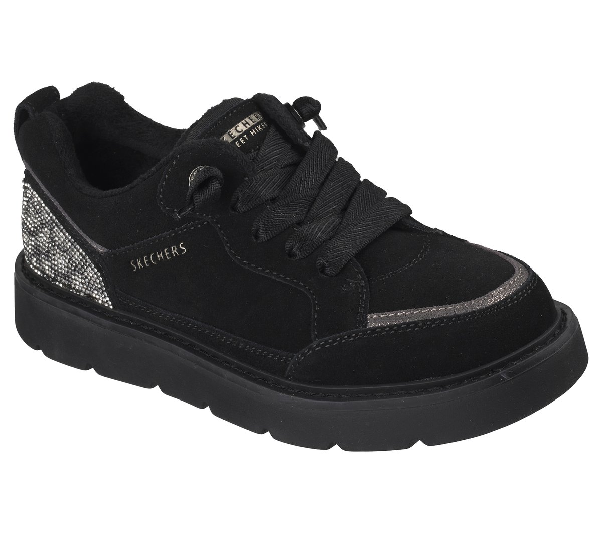 Spot-on style and wild comfort combine in Skechers Street™ Keepsakes Cozy – Street Hiker Leopard. This water-repellent, everyday design features a 3M® Scotchgard®-treated suede upper with a rhinestone-embellished leopard print heel, tied-off chunky laces, soft chenille lining, and a cushioned Skecher Memory Foam™ insole for comfort with every step.