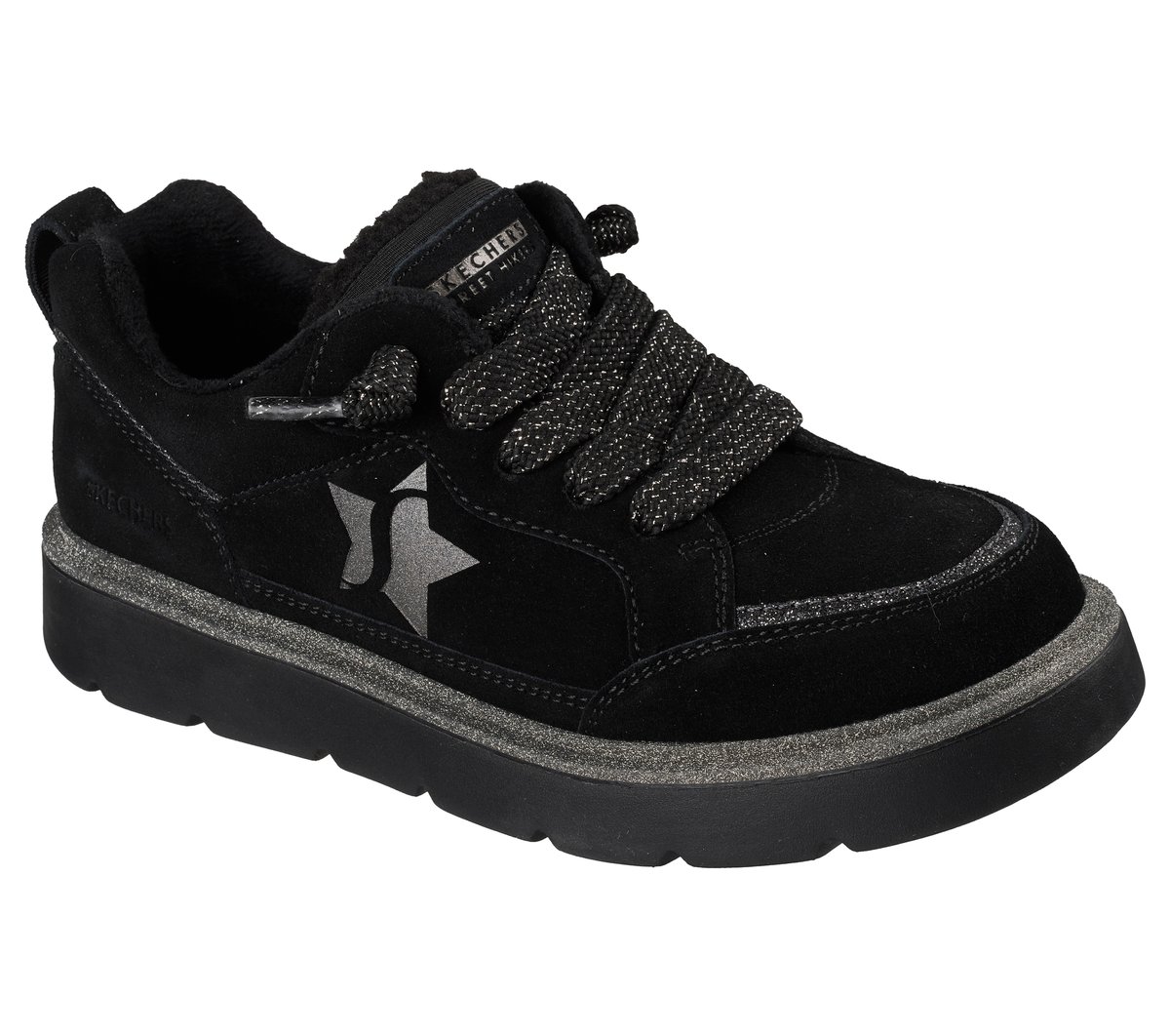 Hit the pavement in heel-to-toe comfort and style wearing Skechers Street™ Keepsakes Cozy – Street Hiker Star. This water-repellent, everyday design features a 3M® Scotchgard®-treated suede and duraleather upper with tied-off chunky laces, soft chenille lining, and an embroidered S-star logo detail. Complete with a cushioned Skecher Memory Foam™ insole for comfort with every step.