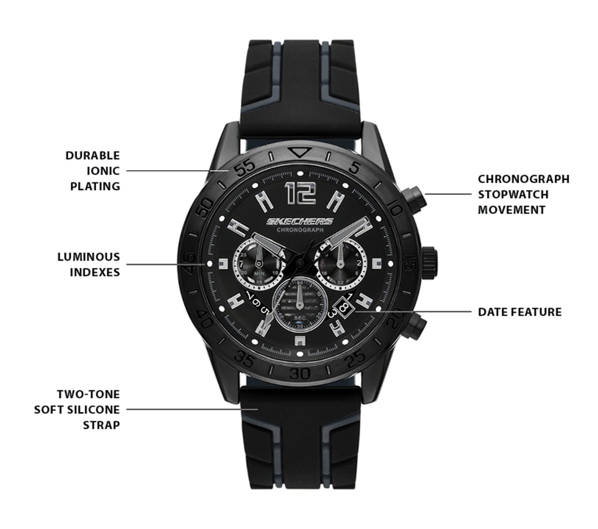 Finish your look with a timely classic in Skechers Kornblum Chrono Watch. Featuring a metallic case paired with a silicone strap and chronograph display.