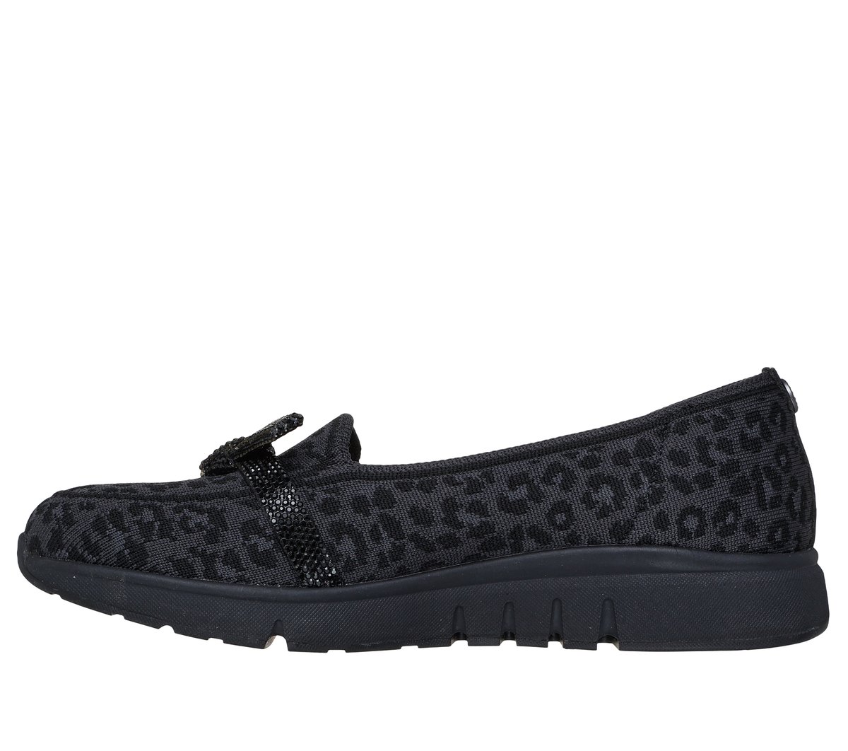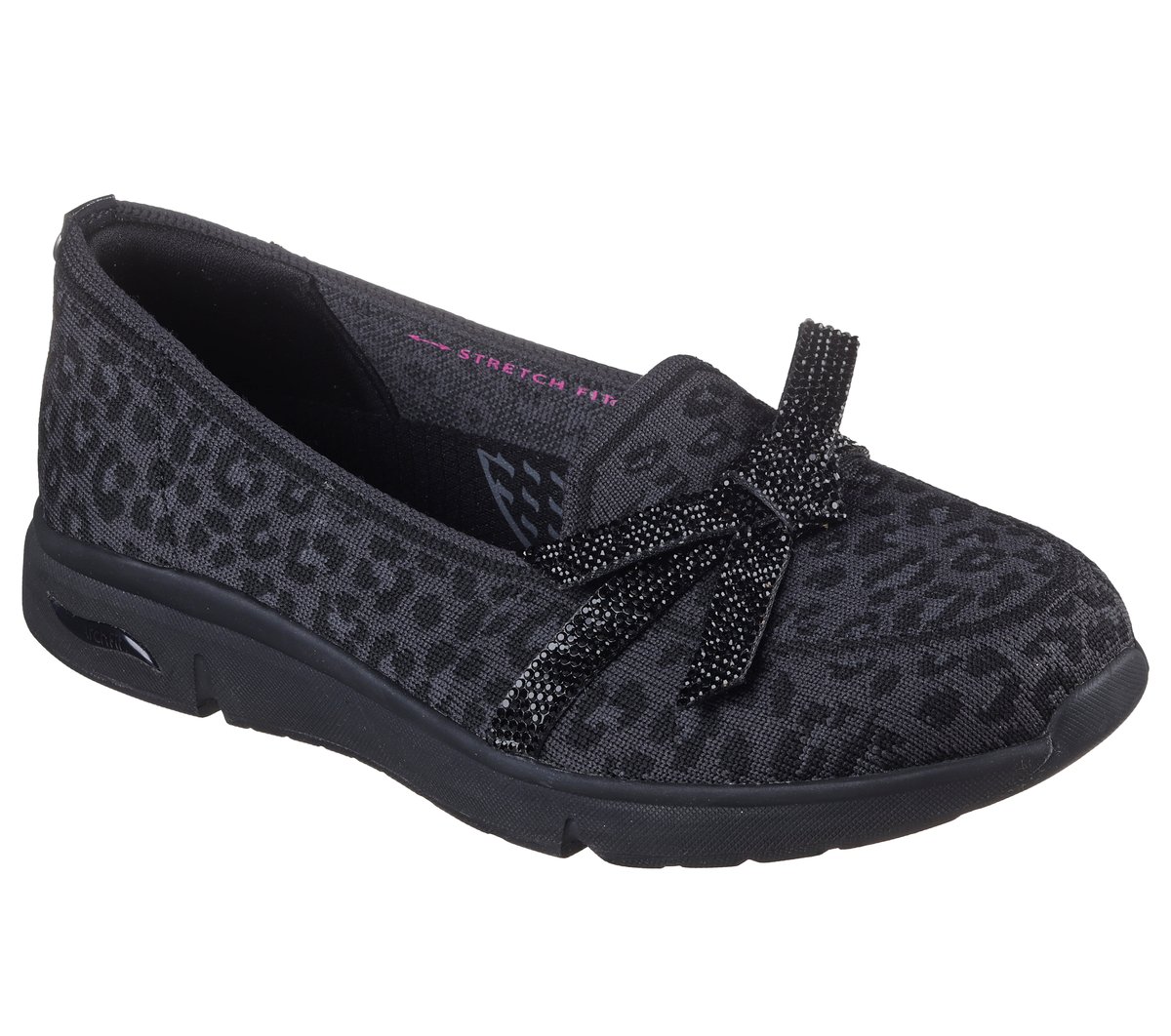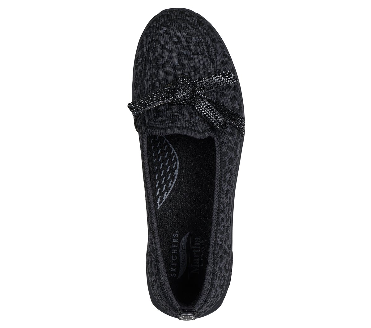 Celebrated lifestyle expert, Martha Stewart, delivers her one-of-a-kind touch to Skechers in this spirited collaboration. Glam up your look with long-lasting comfort wearing Skechers x Martha Stewart: Arch Fit® Living. This vegan loafer features a Stretch Fit® leopard print upper with a rhinestone embellished bow and a removable Arch Fit® insole.