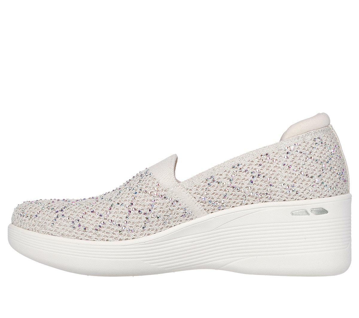 Celebrated lifestyle expert, Martha Stewart, delivers her one-of-a-kind touch to Skechers in this spirited collaboration. Shine on in fashionable flair wearing Skechers x Martha Stewart: Pier-Lite – My Reflection. This casual fashion wedge features a Stretch Fit® mesh knit upper with rhinestone embellishments, a wedge midsole and a Skechers Air-Cooled Memory Foam® insole.