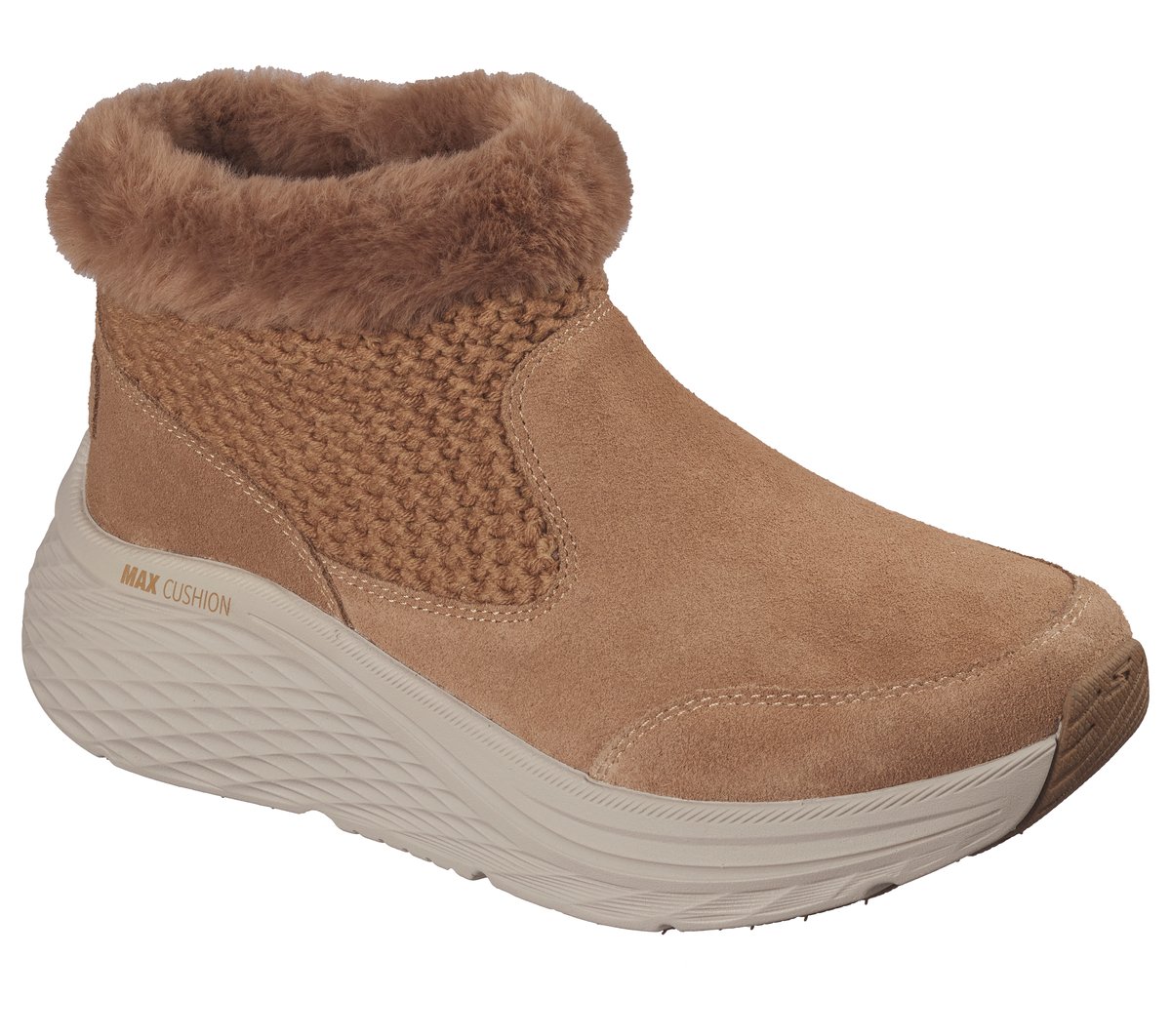 Get cozy with new heights of comfort this season wearing Skechers Max Cushioning Elite™ 2.0 Boot – Selena. This cold-weather zip-up bootie features a 3M® Scotchgard® treated suede upper with sweater-knit trim, faux fur collar and lining, lightweight ULTRA GO® cushioning, a Skechers Air-Cooled Goga Mat™ insole, plus an anti-slip traction bottom.