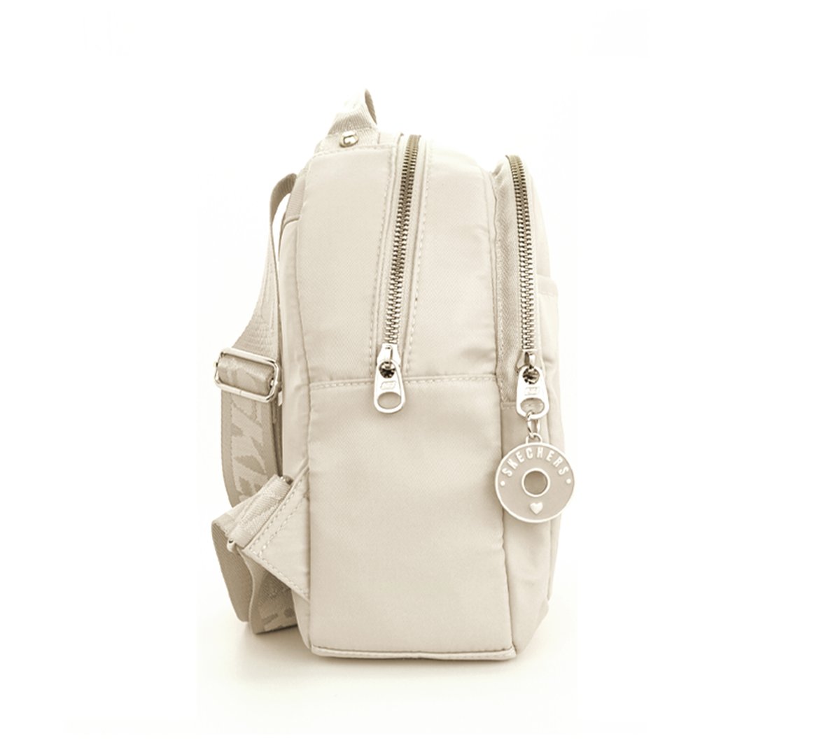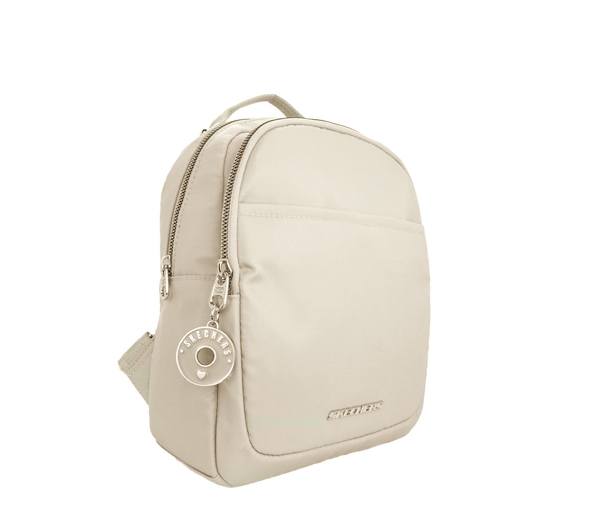 Carry your everyday essentials in classic style with Skechers Mini Backpack. This monochromatic fashion backpack features dual main compartments with tonal zippers, an open front pocket, adjustable woven back straps, and a branded metallic keychain accessory.