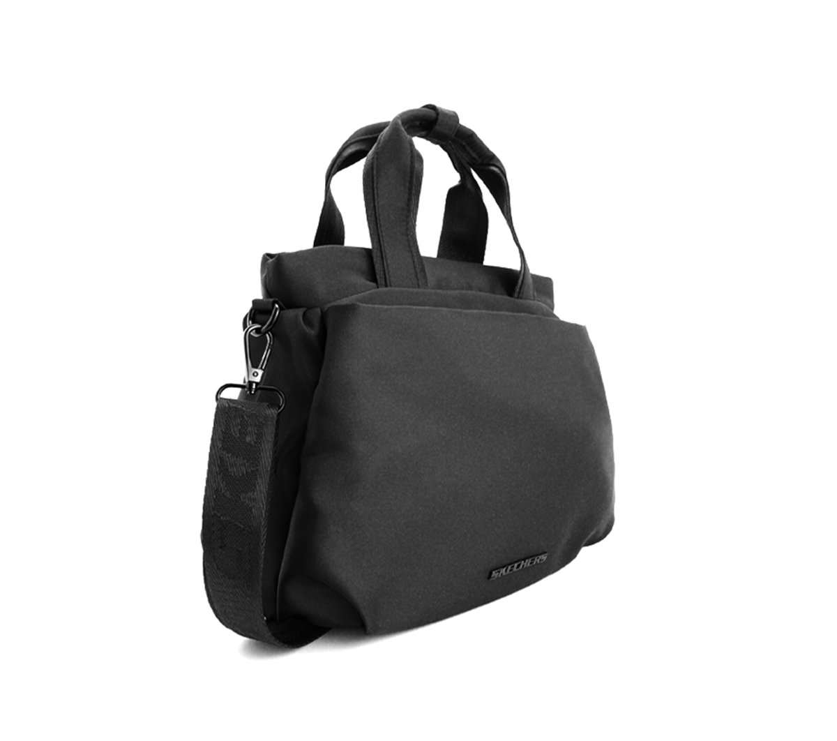 Grab your essentials and go in style with Skechers Mini Tote. This smooth monochromatic design features a zippered main compartment with internal organization, an open front compartment, top handles, and a branded shoulder strap.