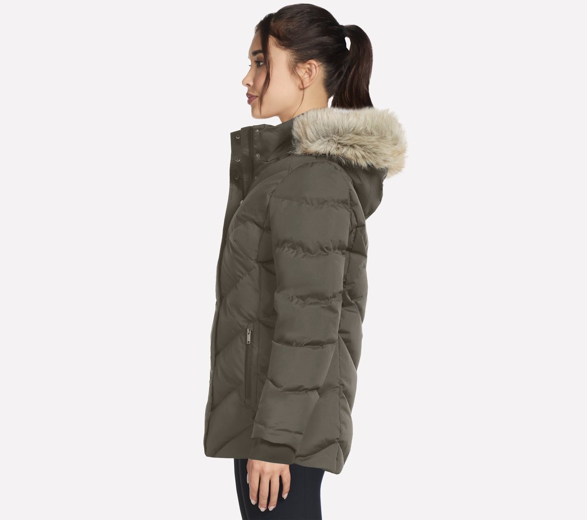 Brave the elements in warmth and style wearing Skechers On-the-GO™ Cozy Fit® Journey Parka. This full-zip puffer parka is made from our lightweight GO SHIELD™ Cozy Fit® fabric and features a removable faux fur-lined hood, front welt hand pockets, and internal storm-cuffed sleeves.