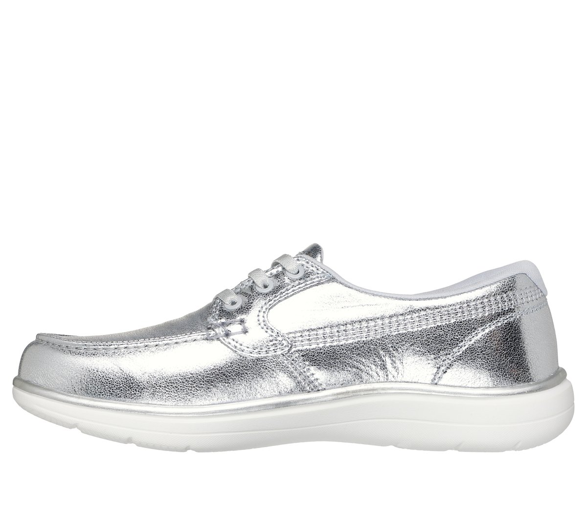 Stylish and versatile comfort combine in Skechers On-the-GO® Flex Radiant – Gleam. This skimmer style features a metallic coated canvas upper, high-rebound Skechers Air-Cooled Goga Mat™ insole, and lightweight ULTRA GO® cushioning.