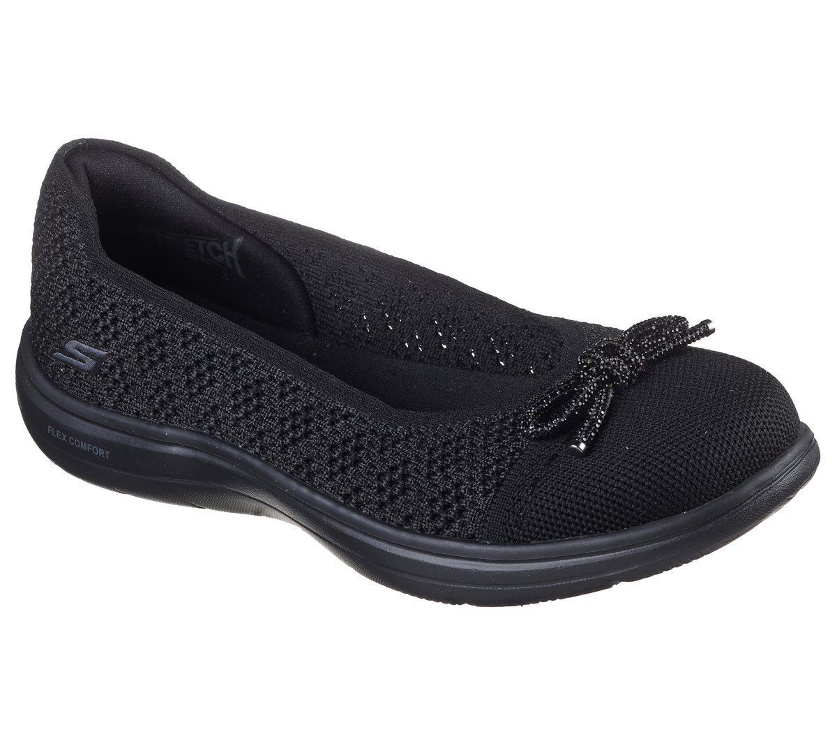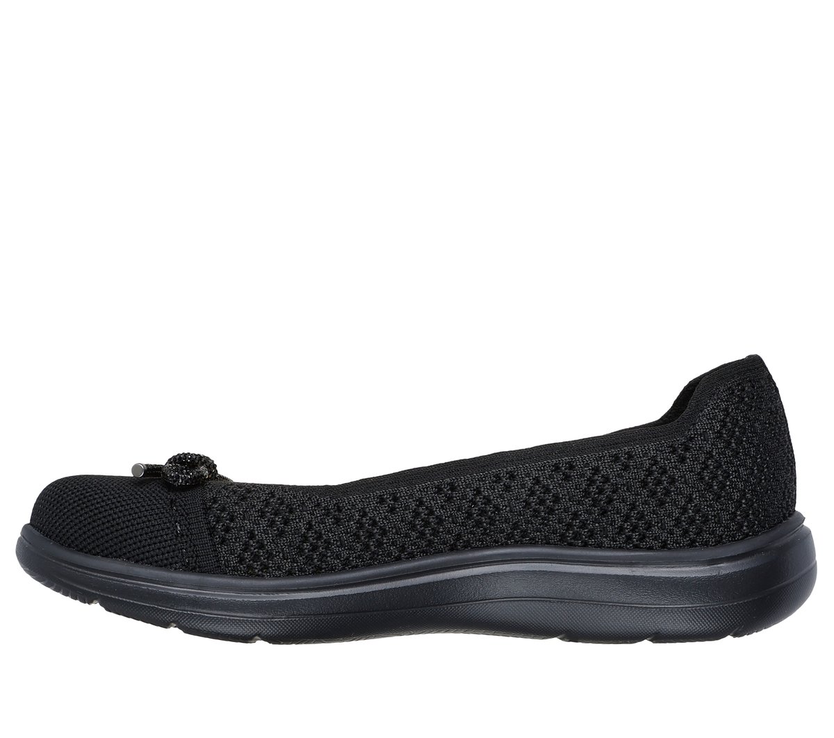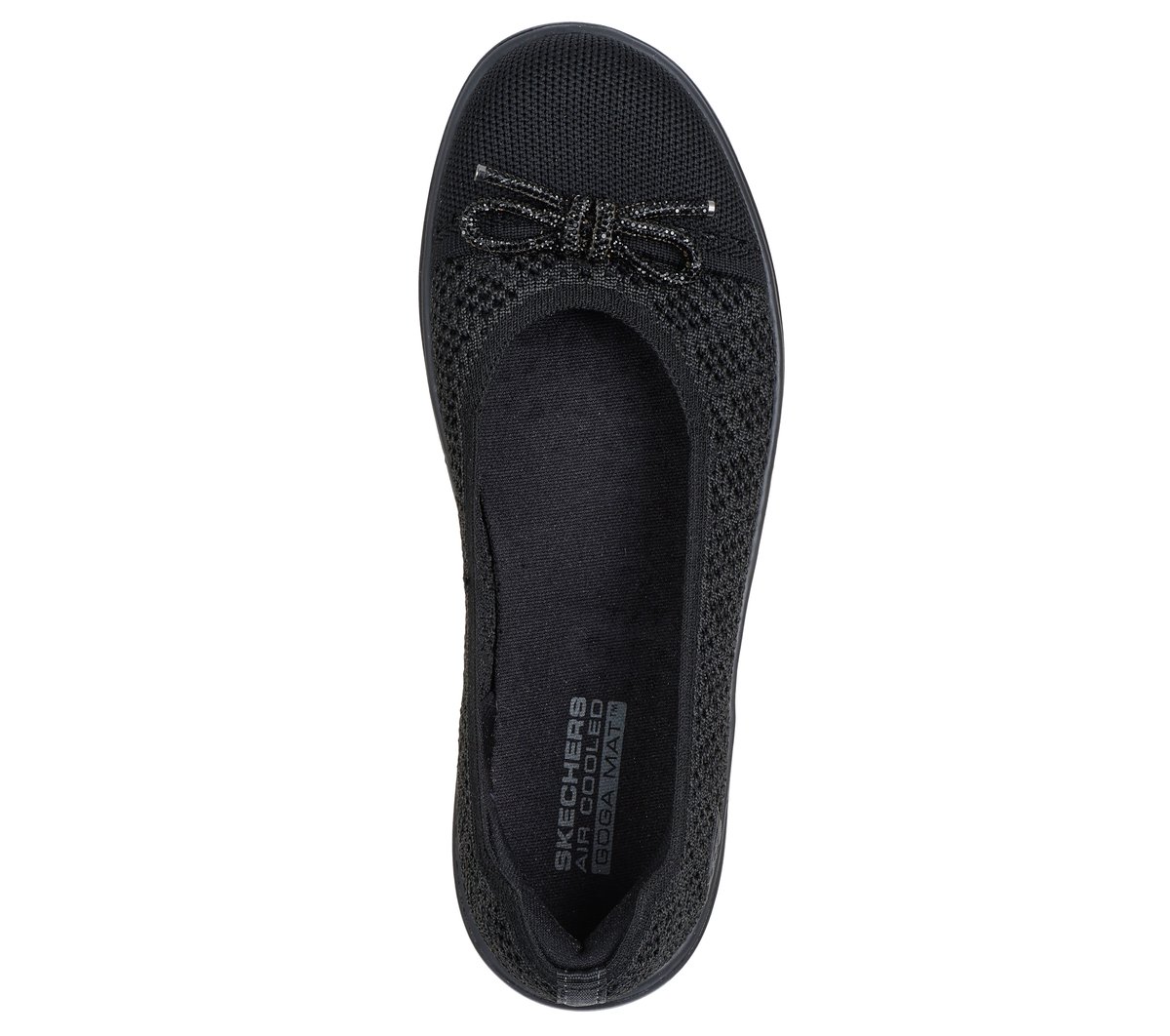 Salute your comfort in nautical style wearing Skechers On-the-GO® Flex Radiant – Splendid. This ballet skimmer features a Stretch Fit® shimmer knit upper with a rhinestone vamp bow, lightweight ULTRA GO® cushioning, and a high-rebound Skechers Air-Cooled Goga Mat™ insole.