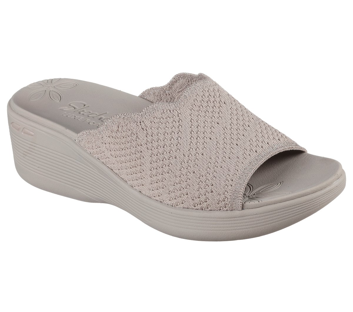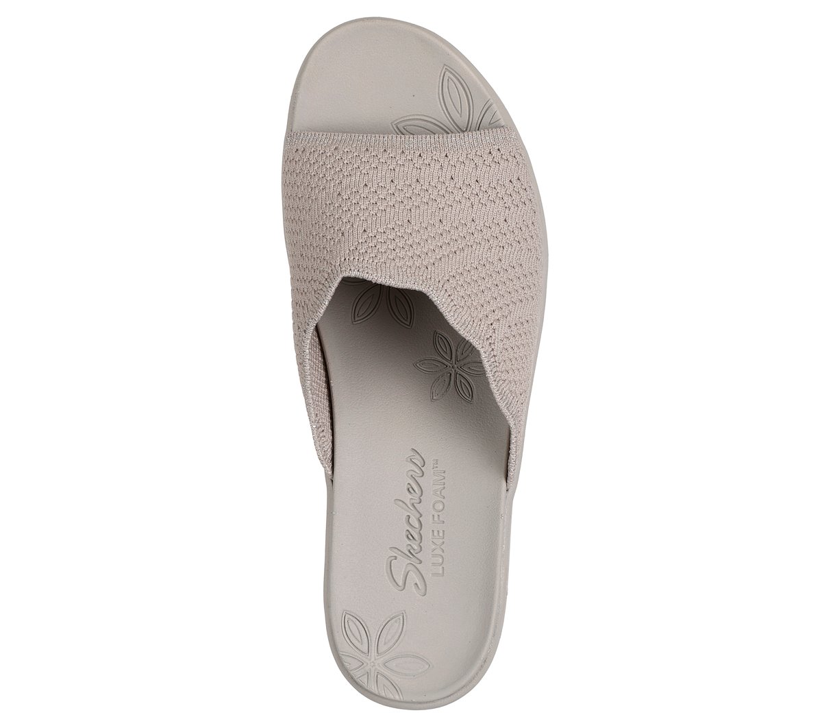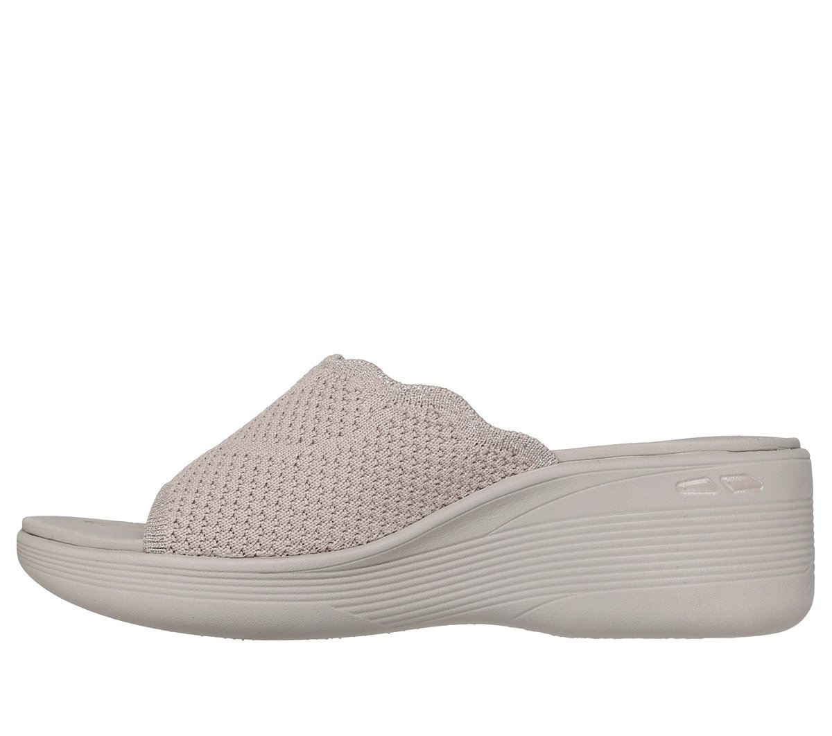 Step into the season with easygoing comfort in Skechers Pier-Lite – Classic Elegance. This wedge slide sandal features a knit scalloped band upper with a cushioned Luxe Foam® footbed.