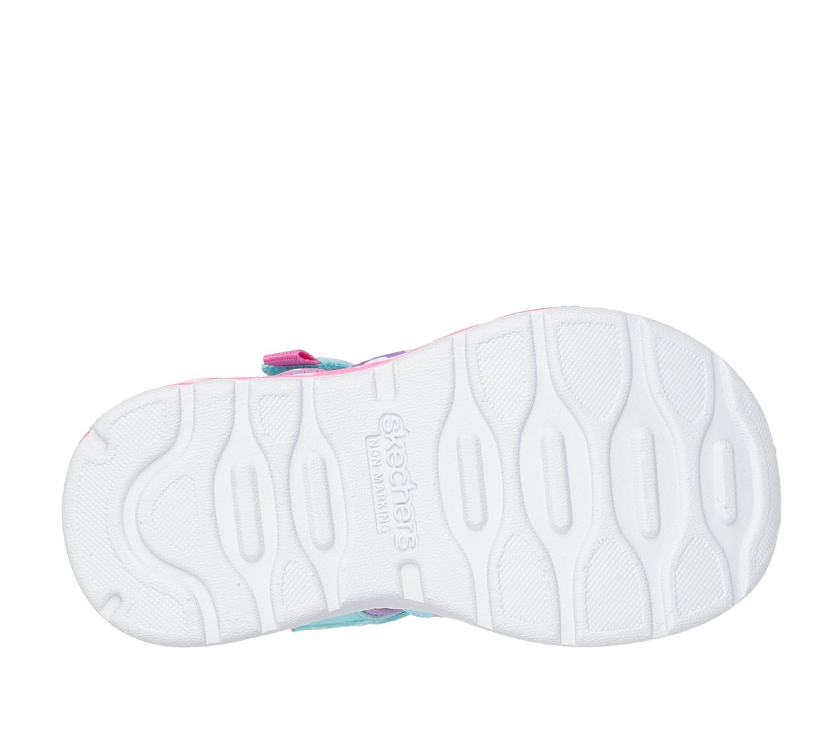 Keep your little one smiling all day long wearing Skechers Play Scene Splash – Cute Crew. This machine-washable sneaker sandal features a synthetic closed-toe upper with an adjustable instep strap and a well-cushioned midsole with playful ocean-themed graphics.