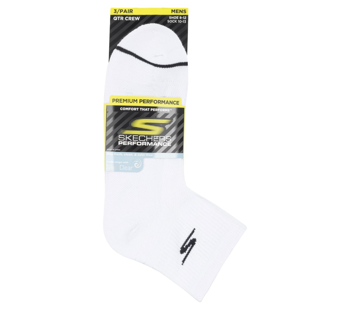 Keep it clean, simple, and comfortable wearing Skechers 3 Pack Men’s Premium Basic Quarter Socks. This basic athletic sock hits just above the ankle and features a ribbed ‘S’ logo cuff, contrast toe seam, and Silver Clear® technology to keep your feet fresh, clean, and odor free.