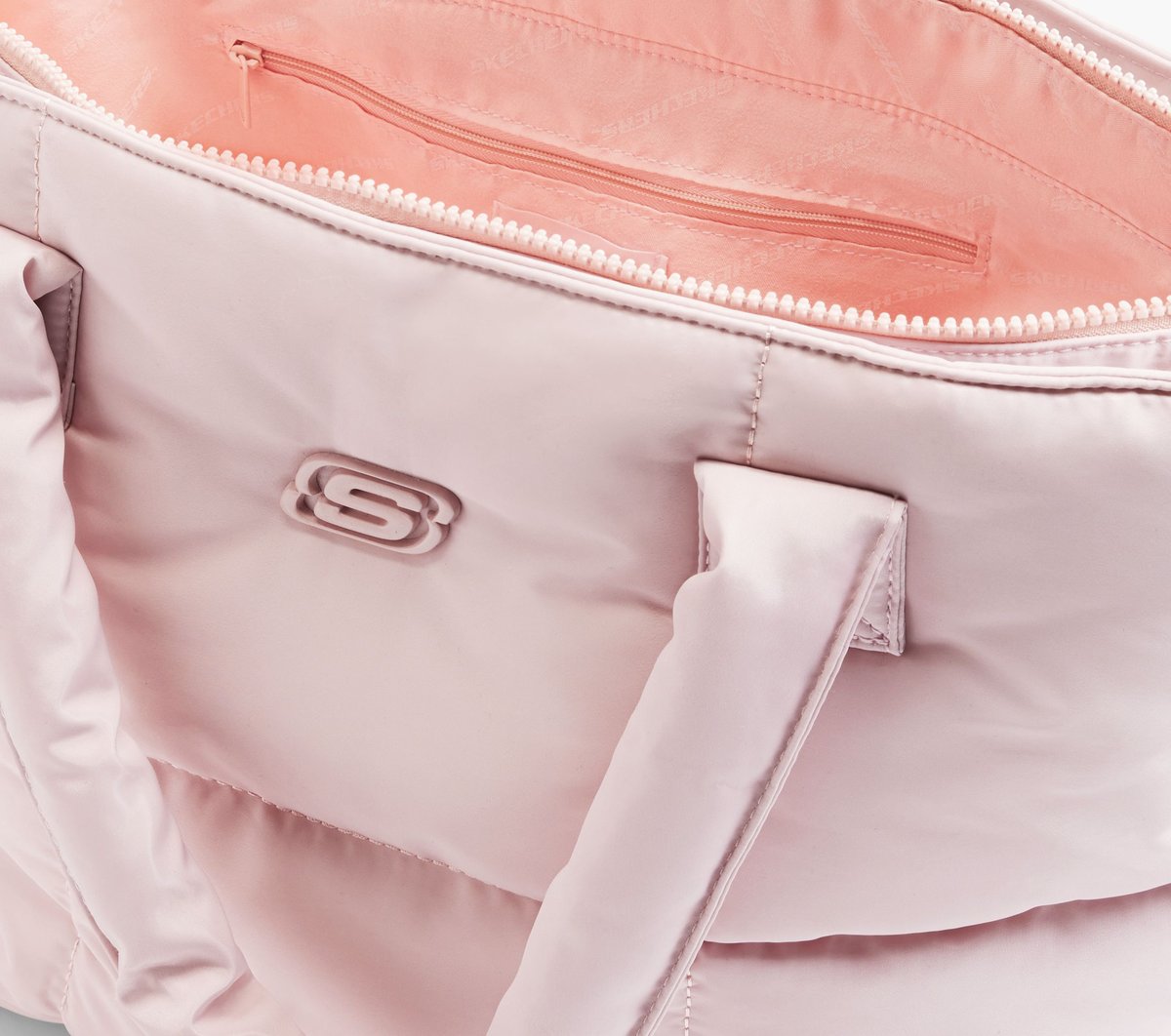 Carry it all in versatile convenience and timeless style with Skechers Quilted Tote Bag. This zip-top puffer tote functions as a shoulder or crossbody bag and features large scale quadrant quilting detail, a detachable branded cross strap, and a zippered internal security pocket.